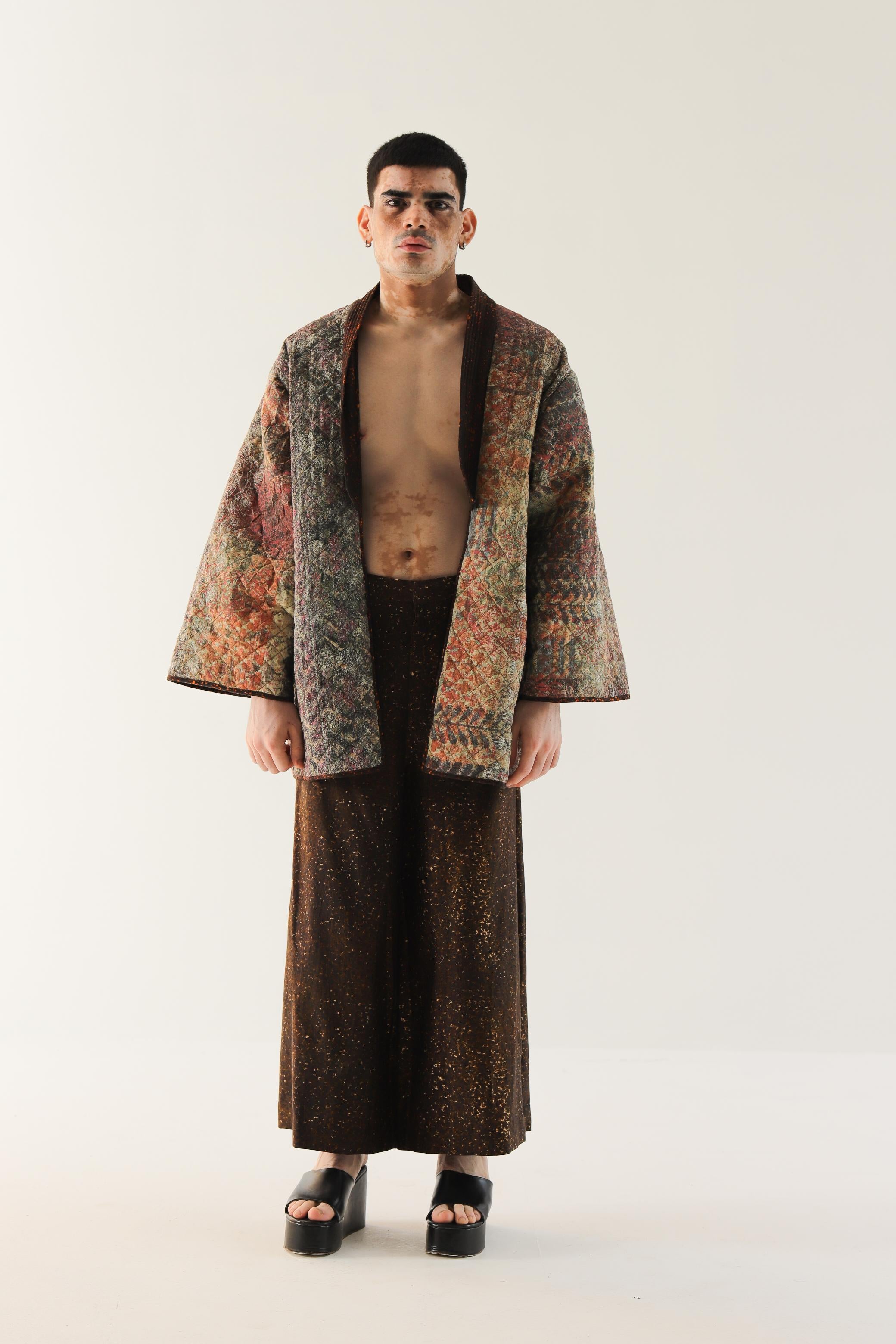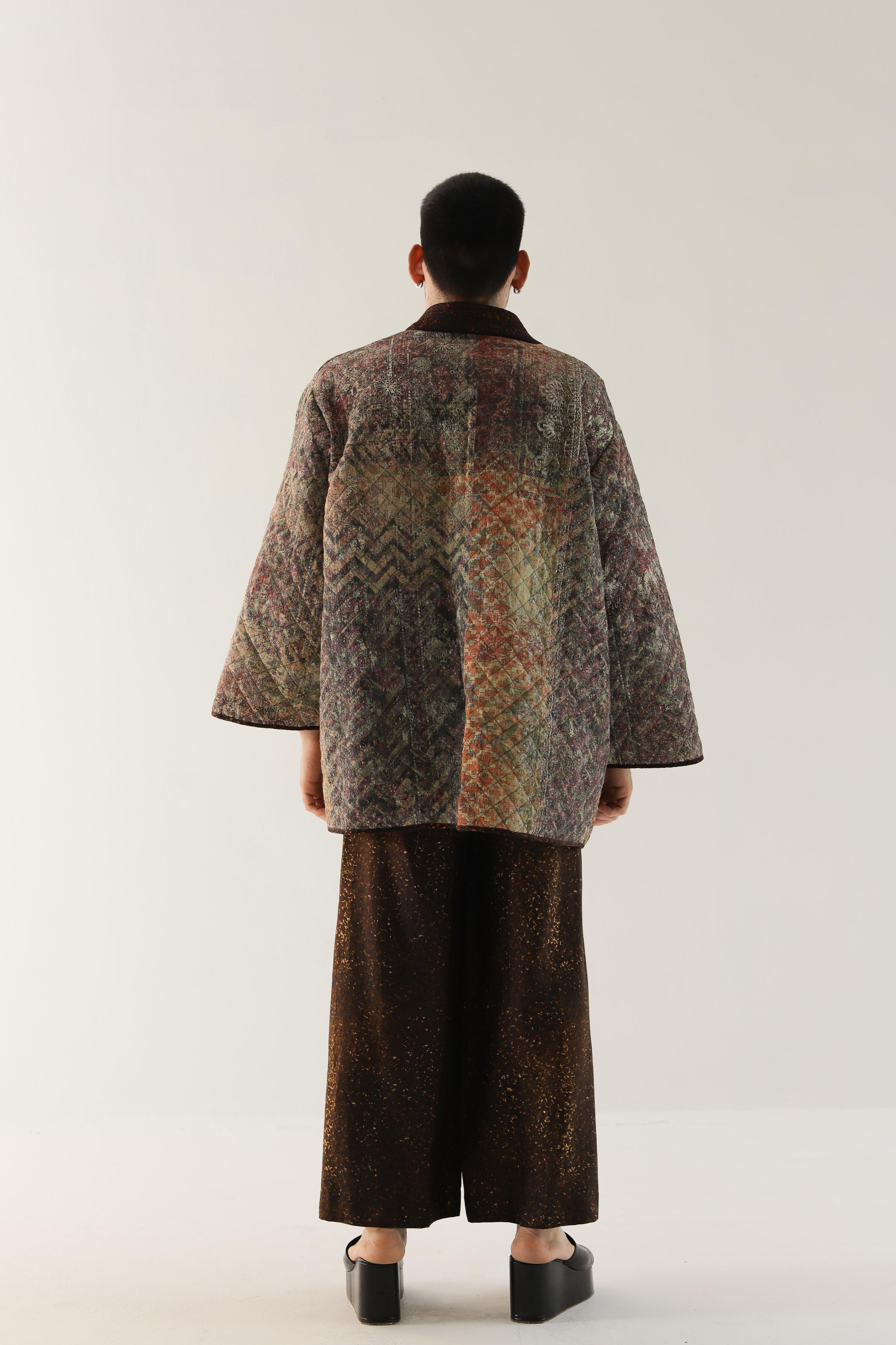 Introducing the Achadda Jacket, a fusion of artistry and comfort. Crafted from multi-imprint block printed fabric, its standout feature is the surreal texture created by the diverse prints. The oversized silhouette, quilted throughout, brings a relaxed fit to the forefront. Finished with a soft printed lining and contrast binding detail, this jacket is a seamless blend of style and ease.
