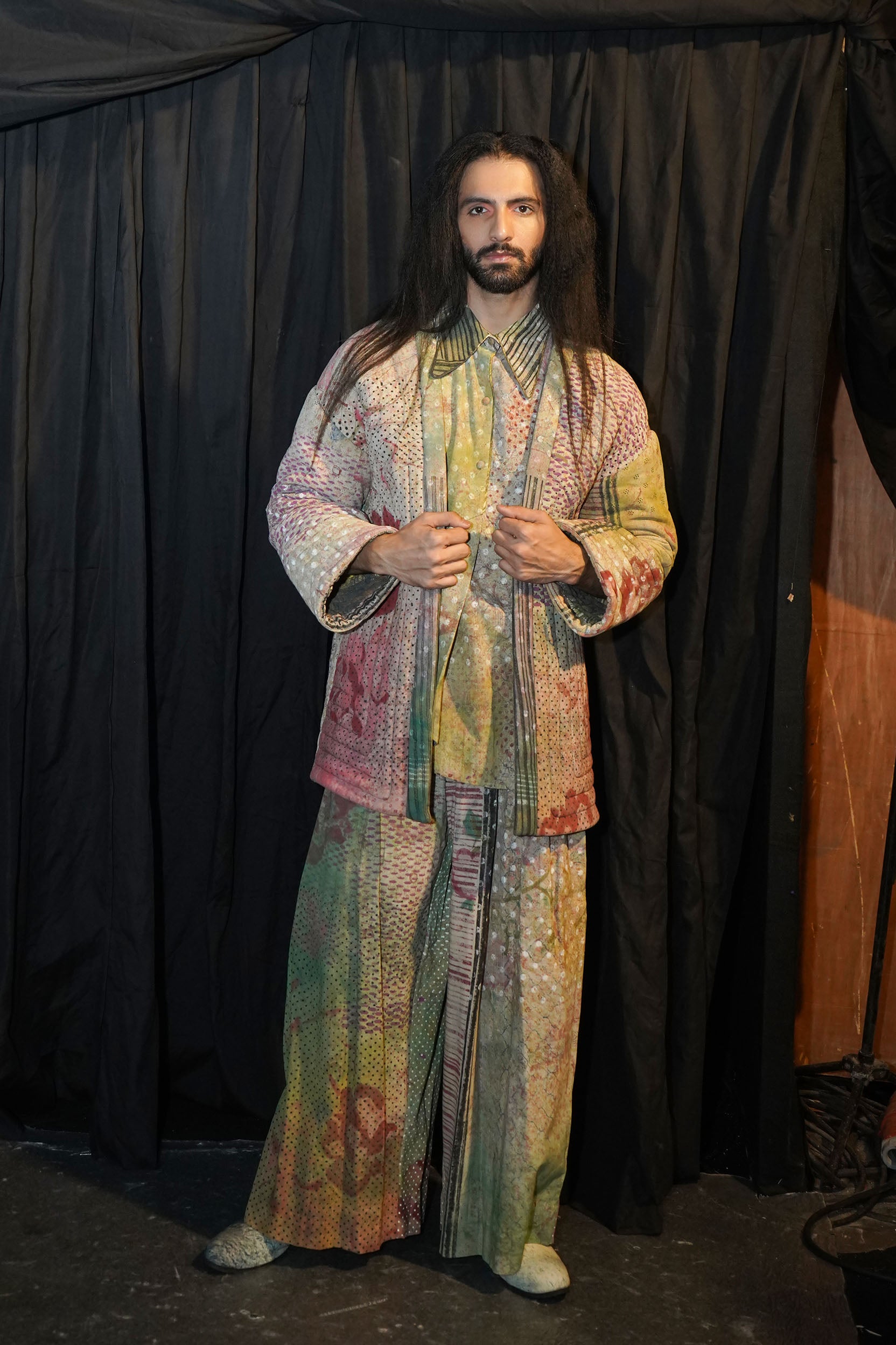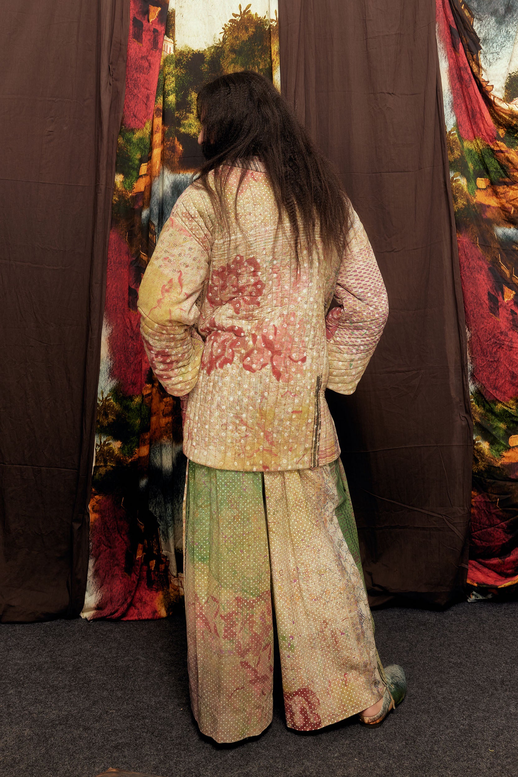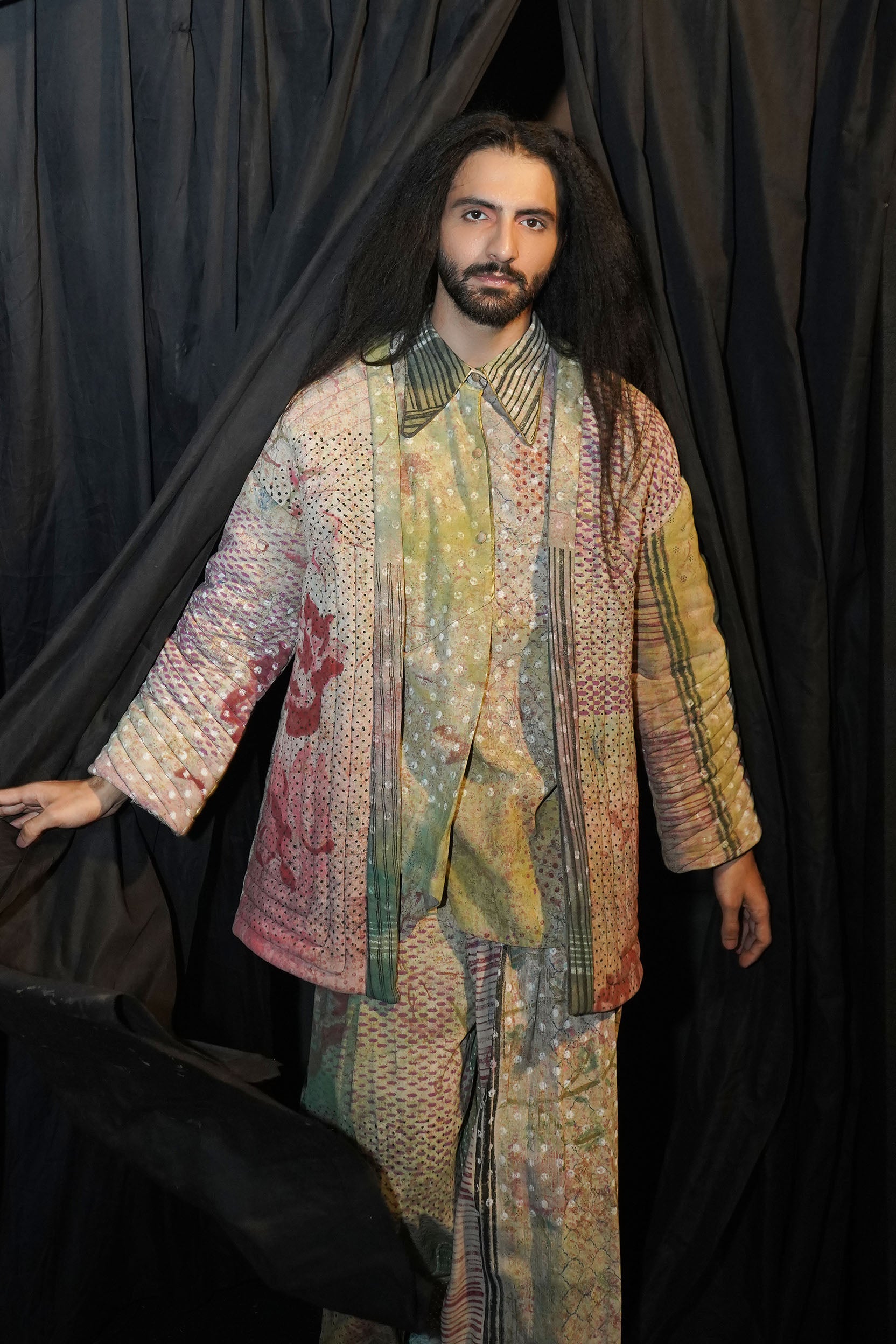 This oversized jacket is crafted in Achadda and features a multi-impression print. It comes with convenient pockets on both sides. It is quilted all over.