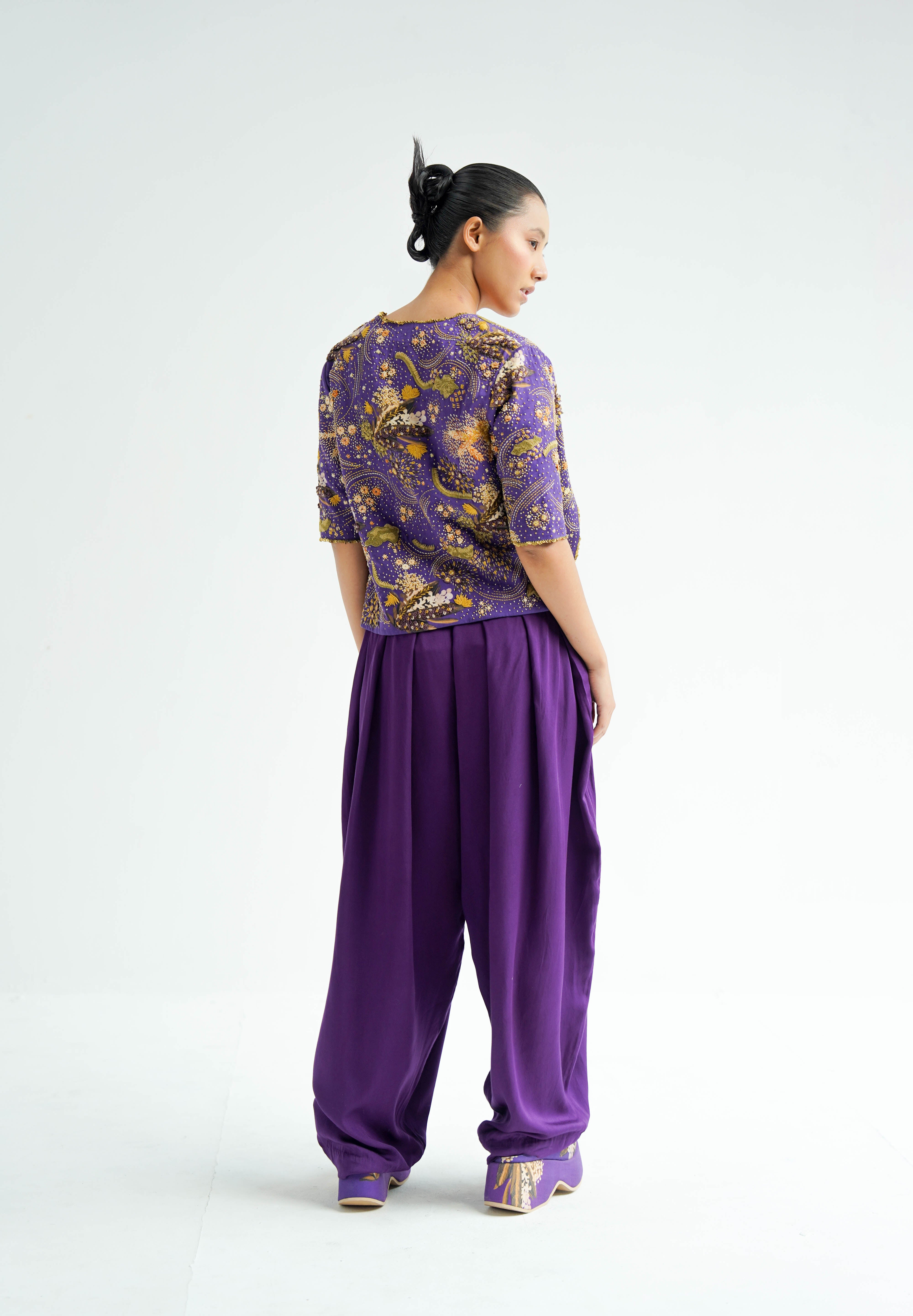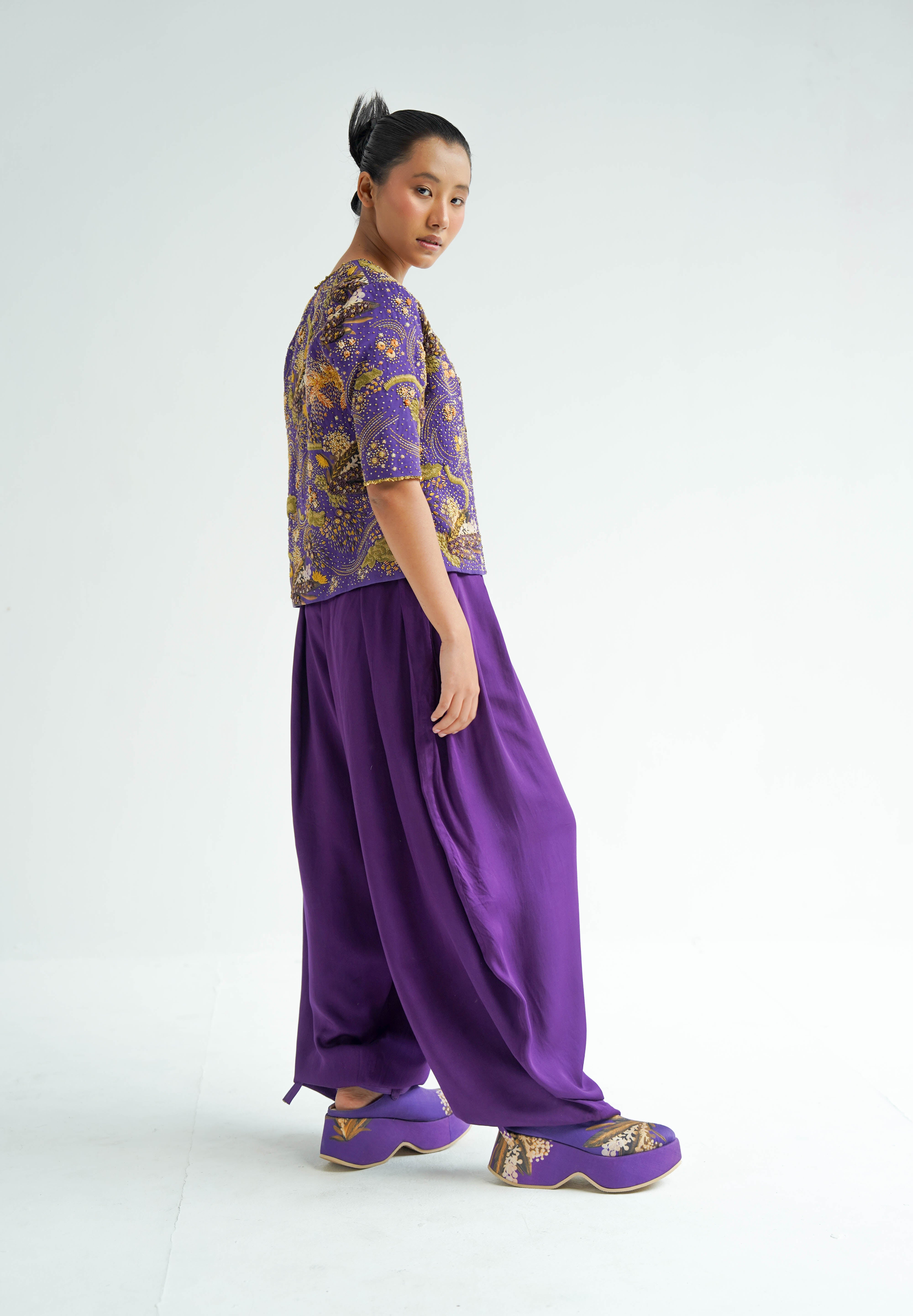 Introducing our Amethyst trousers, hand-dyed in a rich purple hue. Crafted from soft cotton, these trousers feature an easy, relaxed fit and are tapered at the bottom for a clean, polished look. Perfect for effortless style and comfort