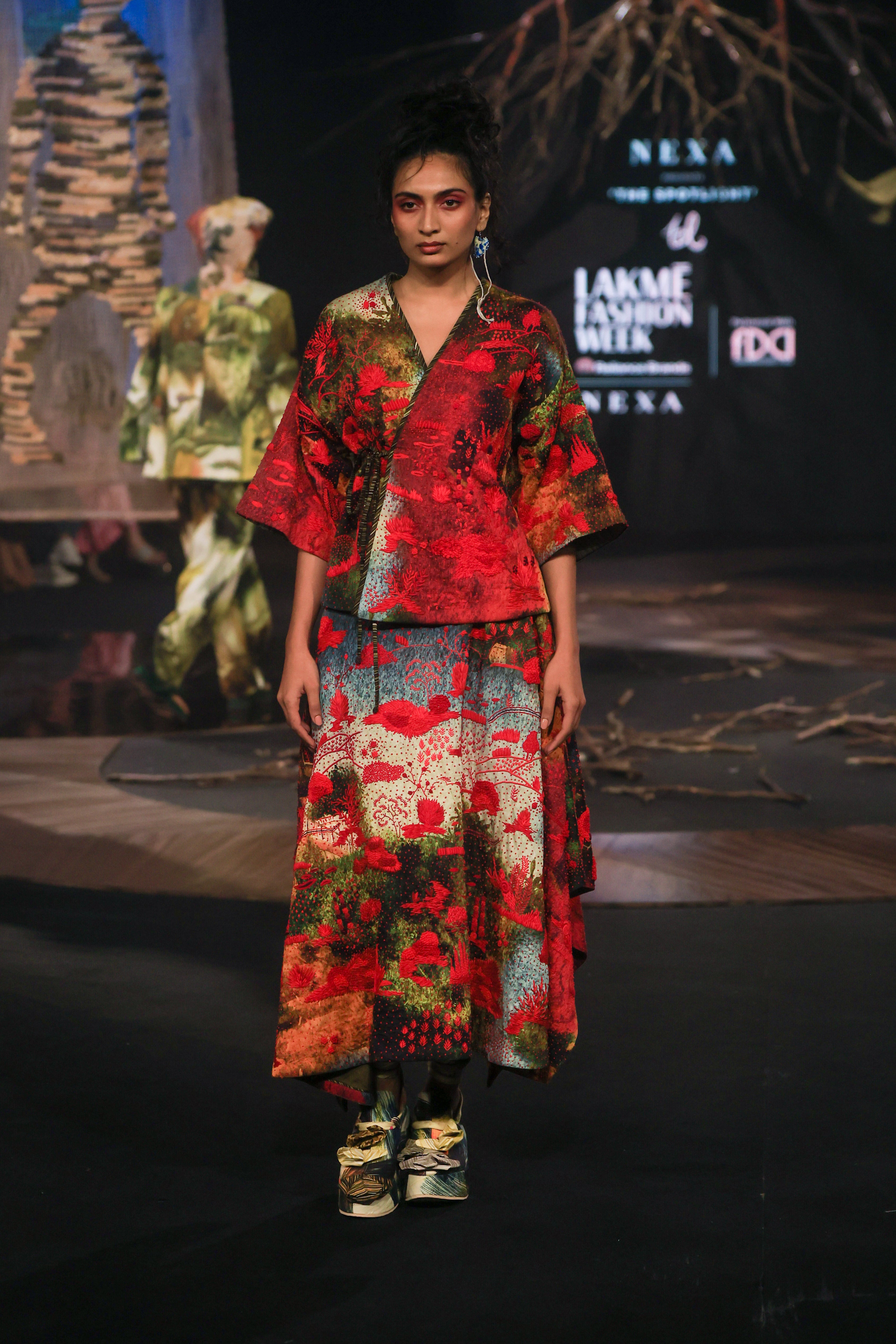 '-FABRIC: COTTON MODAL -COLOR: MULTICOLOR - NO OF COMPONENTS:1 -TECHNIQUE ON FABRIC- HAND PAINTED AND DIGITALLY PRINTED WITH HAND EMBROIDERY