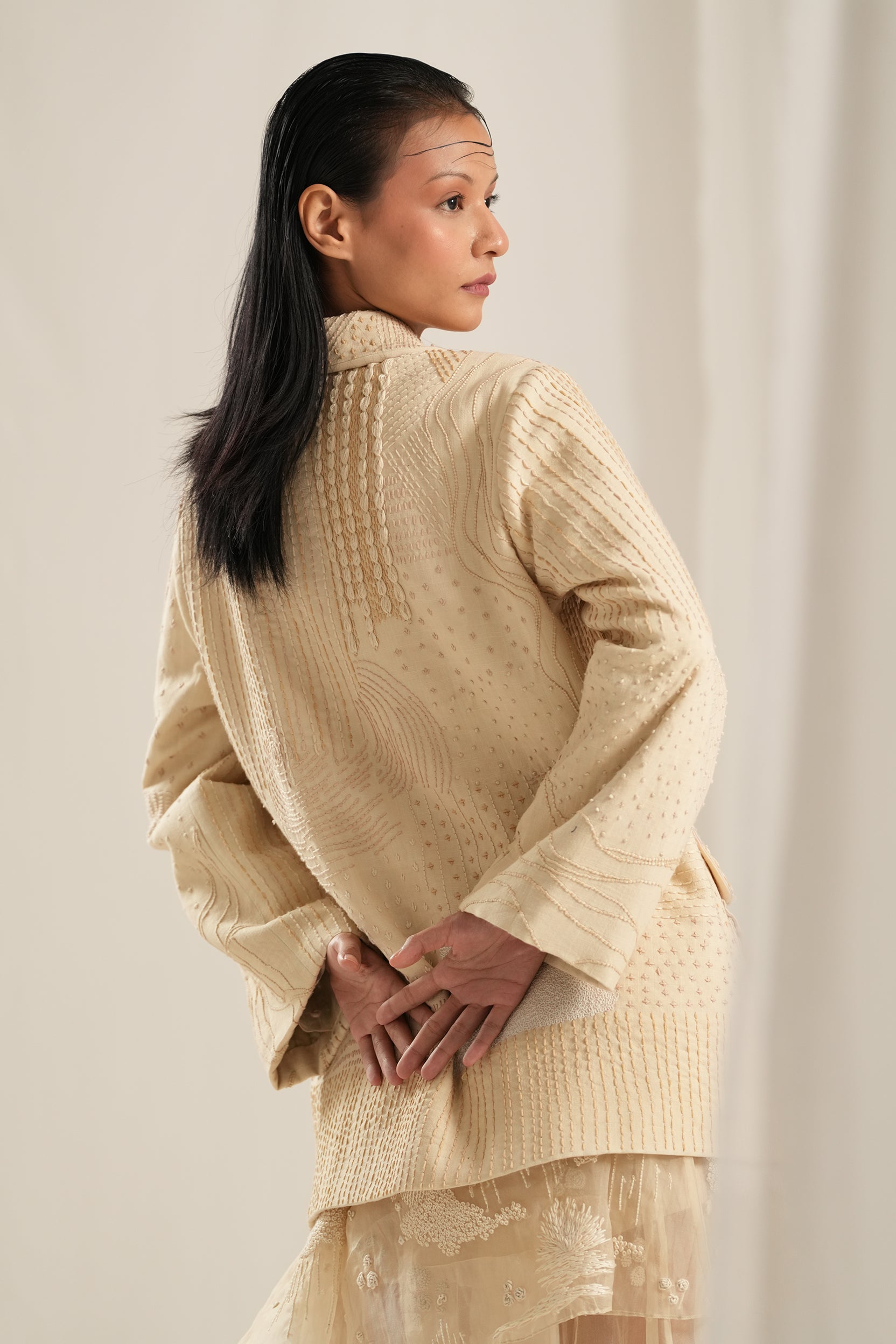 Beige Kantha Emb. Jacket