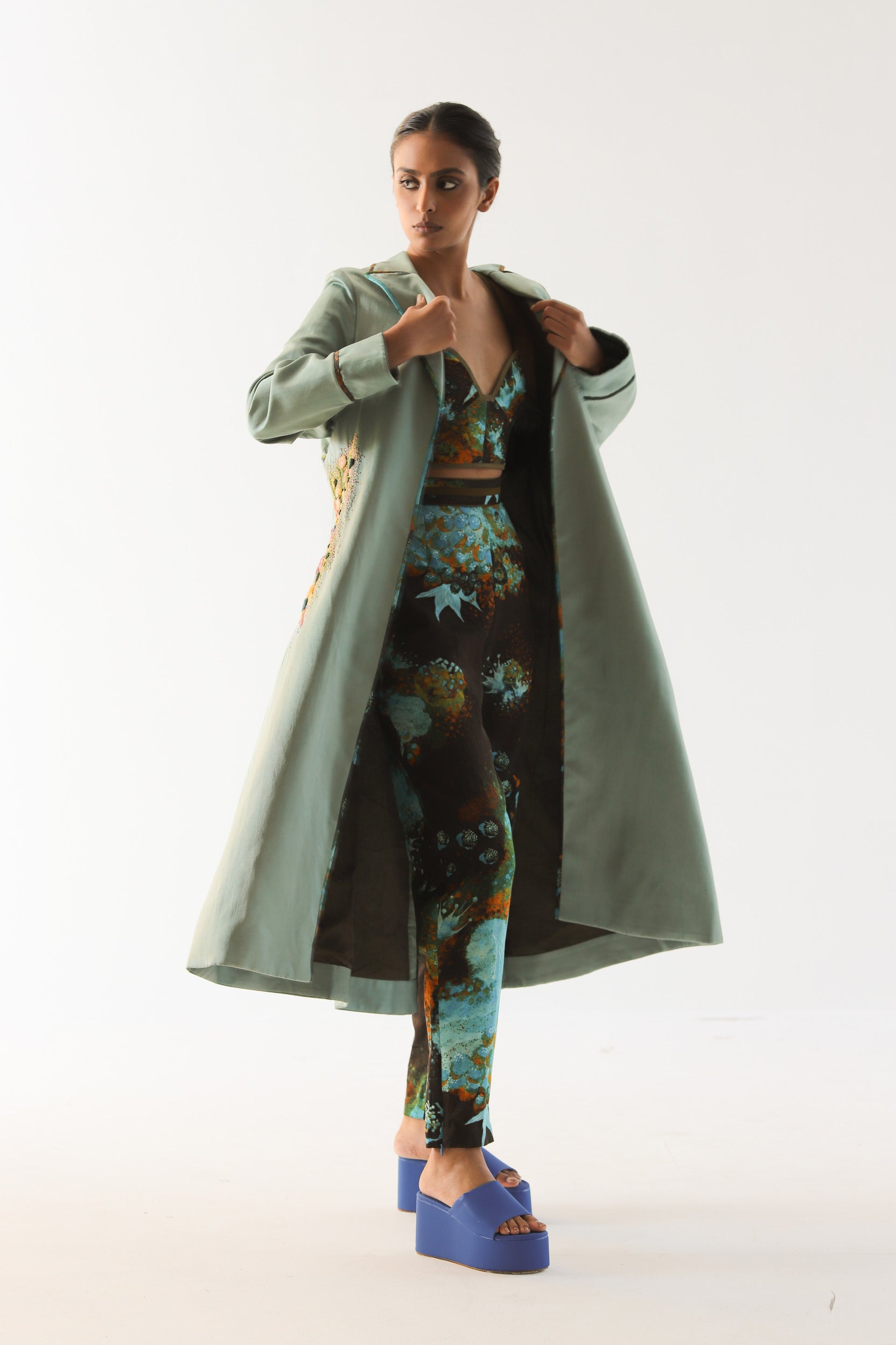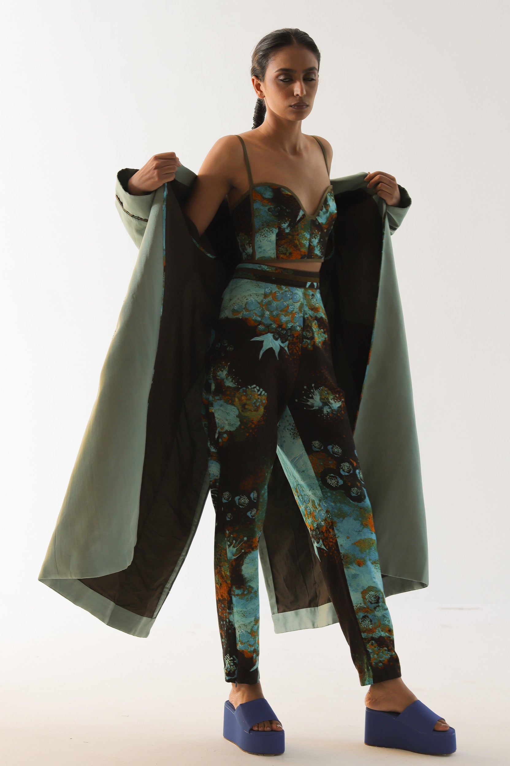 This blue florid bralette is crafted from pure cotton silk satin . It is well fitted, well structured peice finished with perfect stitching with contrast color piping.