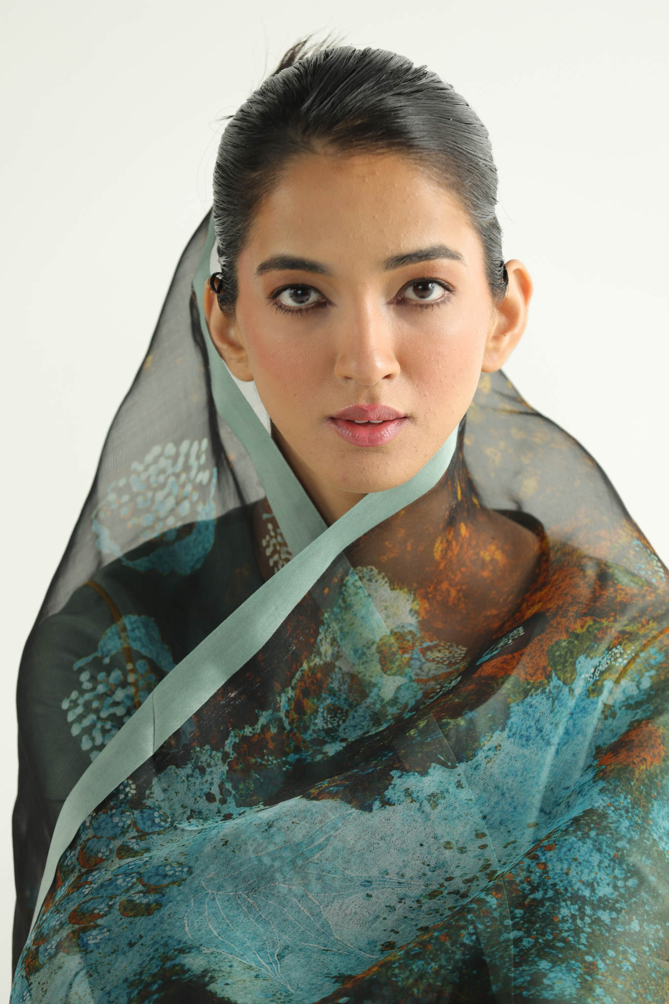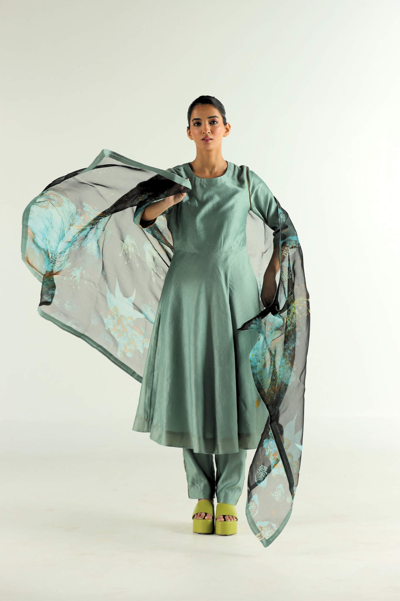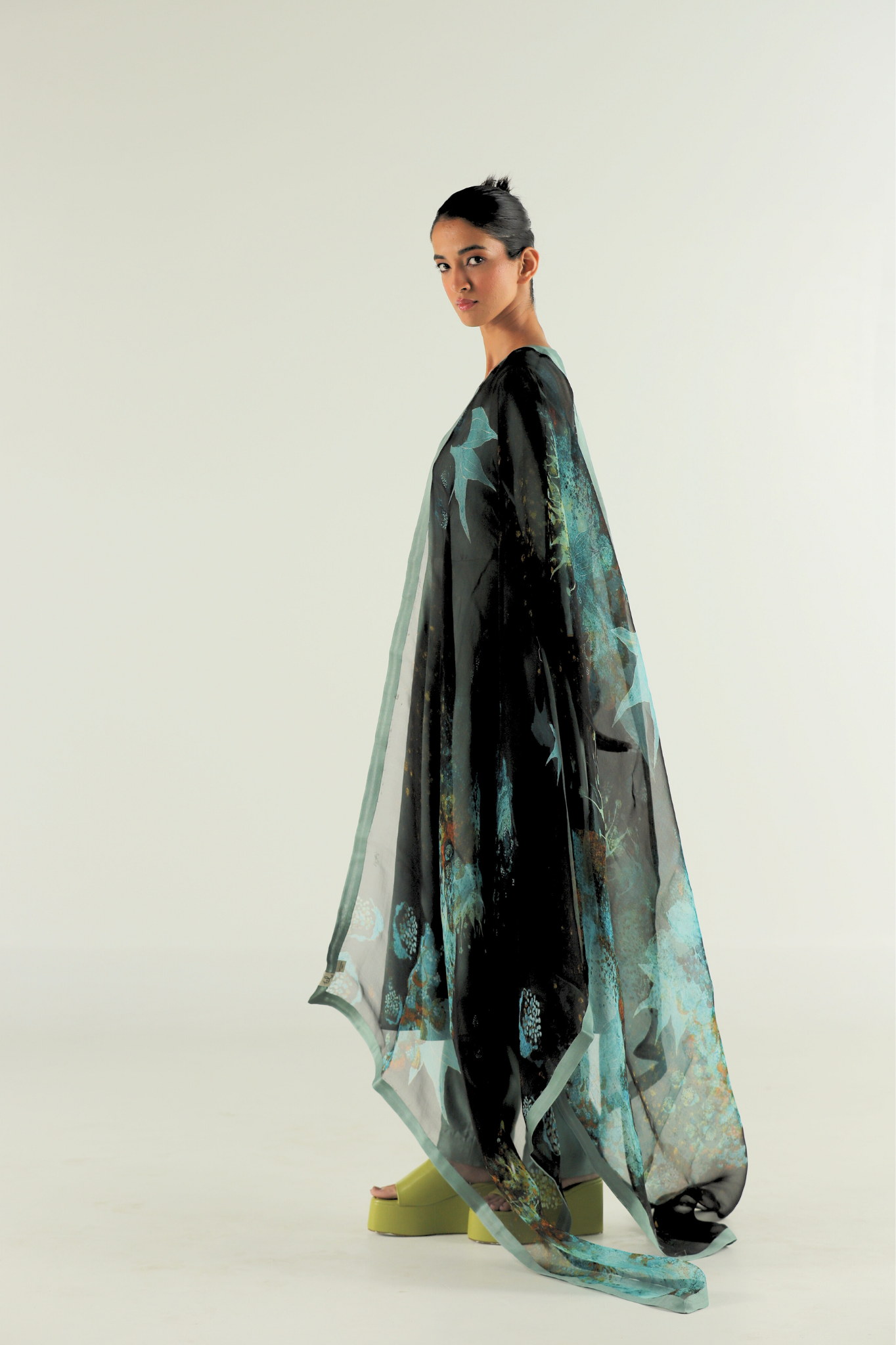 The Blue Florid Dupatta hand-painted, digitally printed florals in silk organza with a clean edge detail.