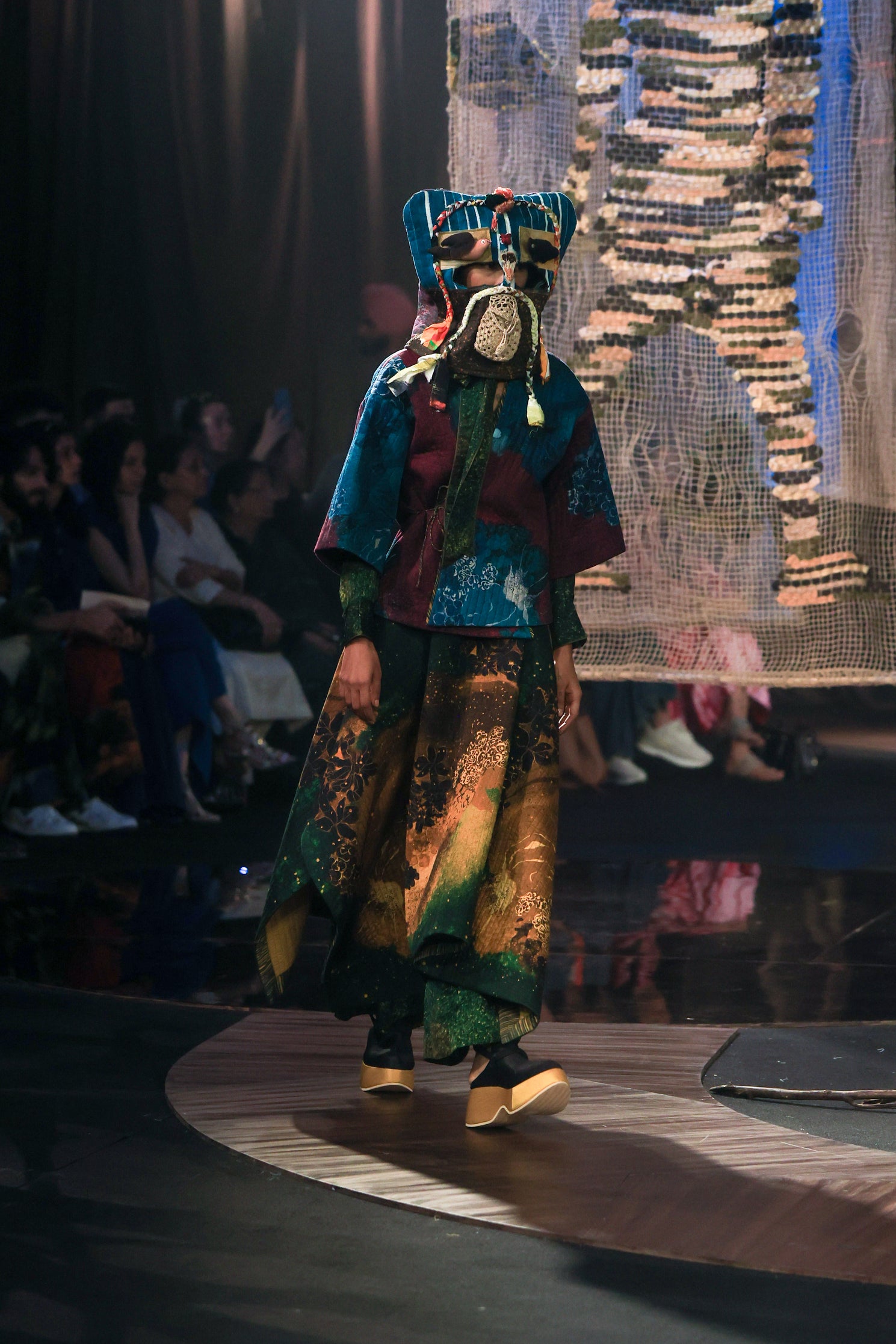 -FABRIC: COTTON MODAL -COLOR: BLUE - NO OF COMPONENTS:1 -TECHNIQUE ON FABRIC:HAND PAINTED DIGITALLY PRINTED