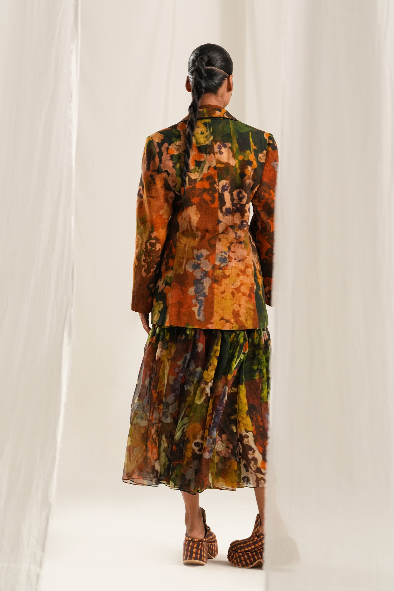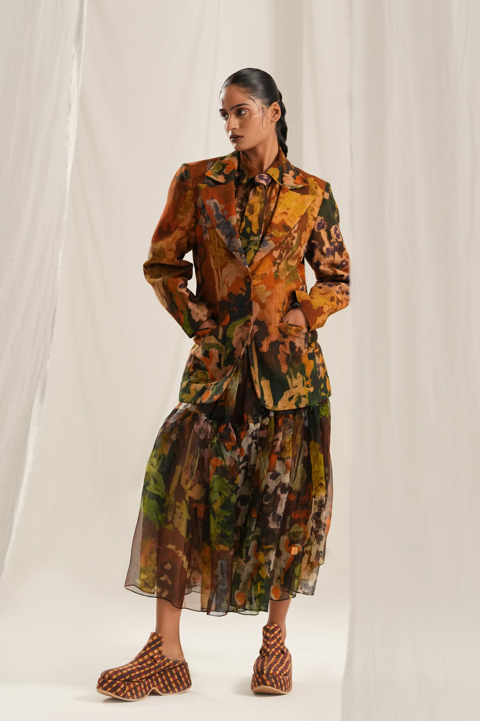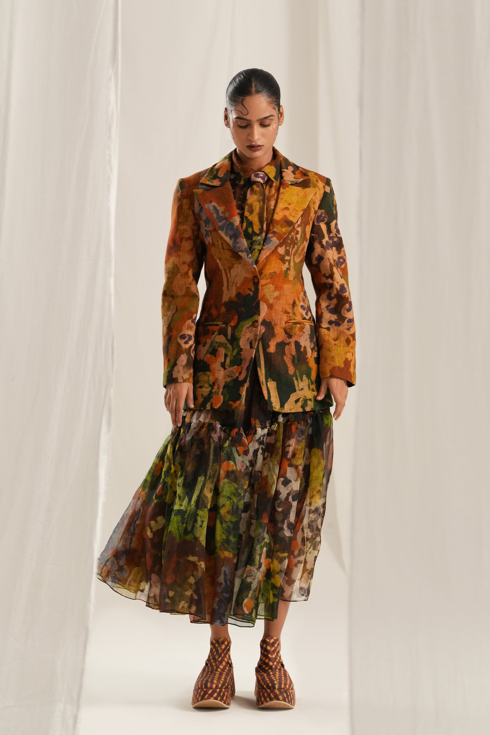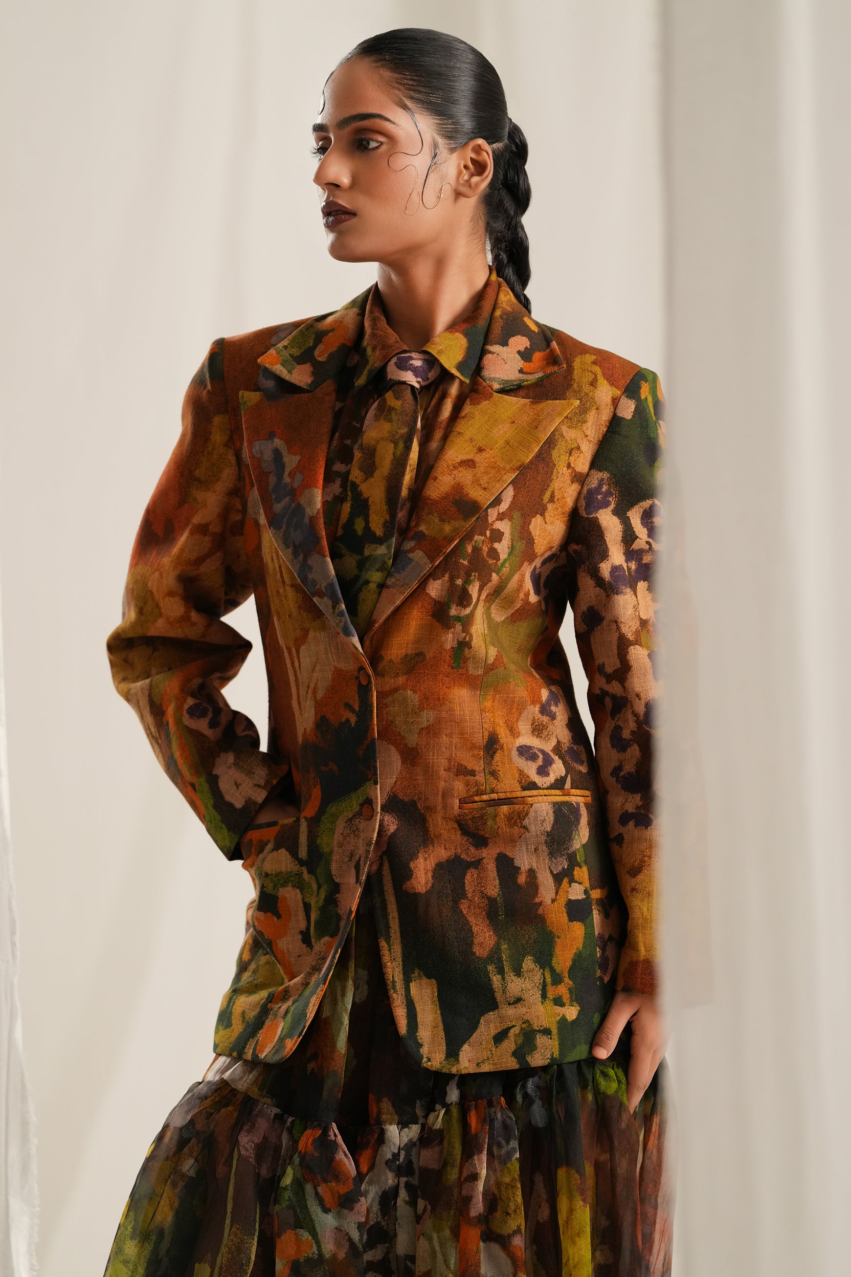 Hand painted digitally printed blazer jacket.