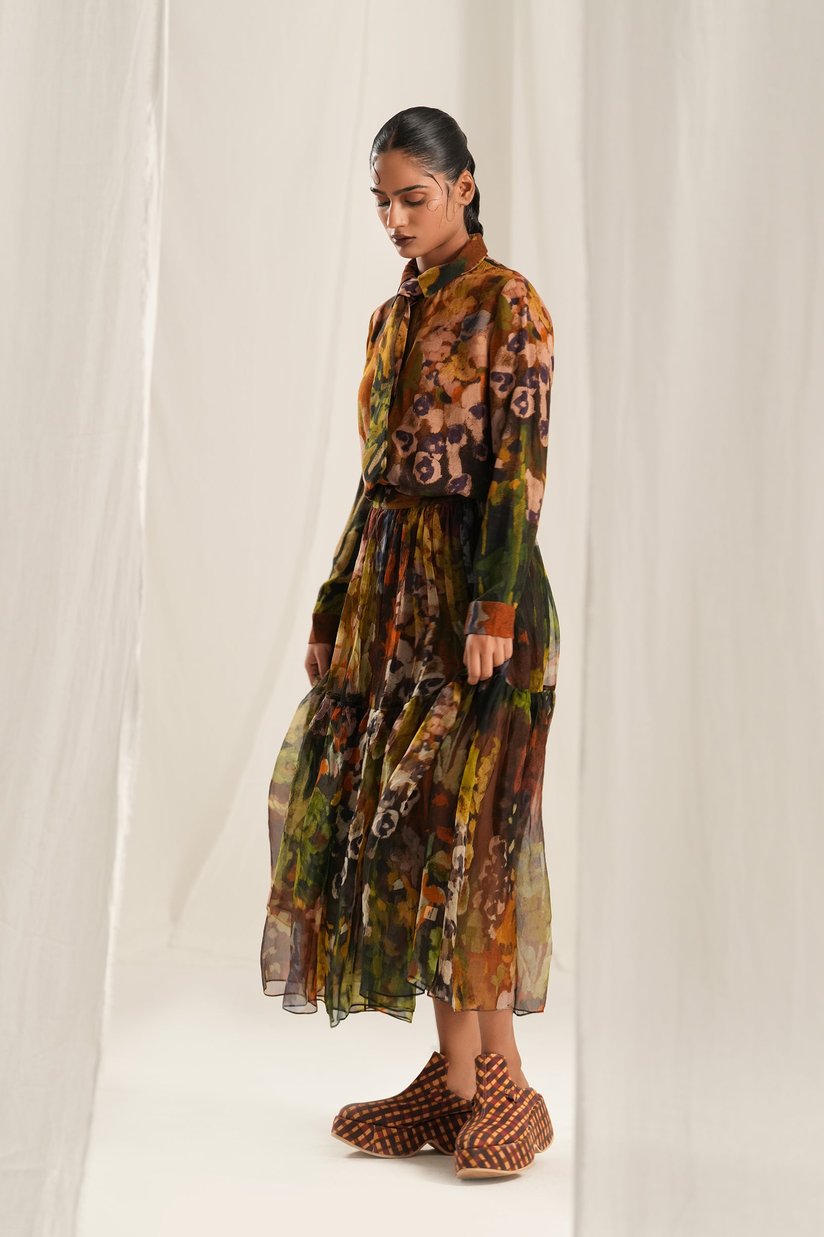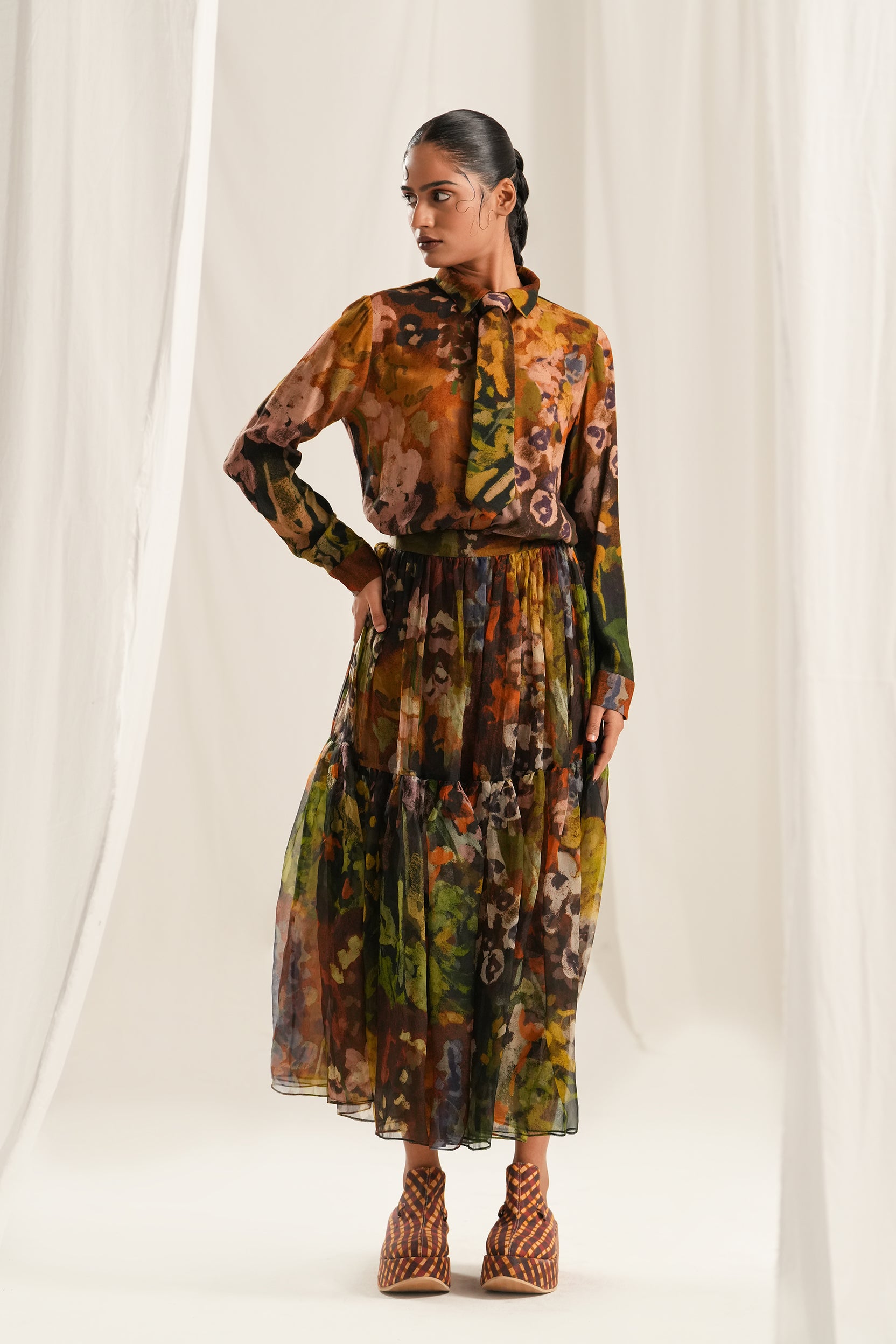 Hand painted digitally printed classic cotton shirt with printed tie.