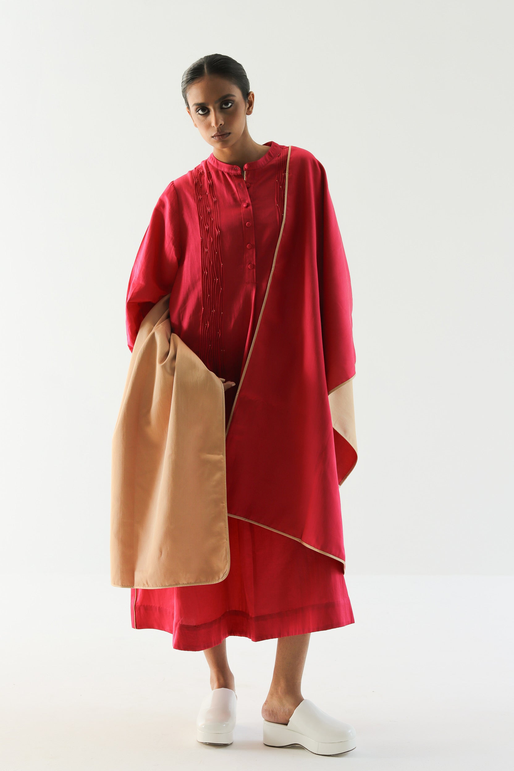 Made in pure cotton silk satin, reversible cape shawl. It has two darts on the shoulder that drapes well making it a very versatile peice.
