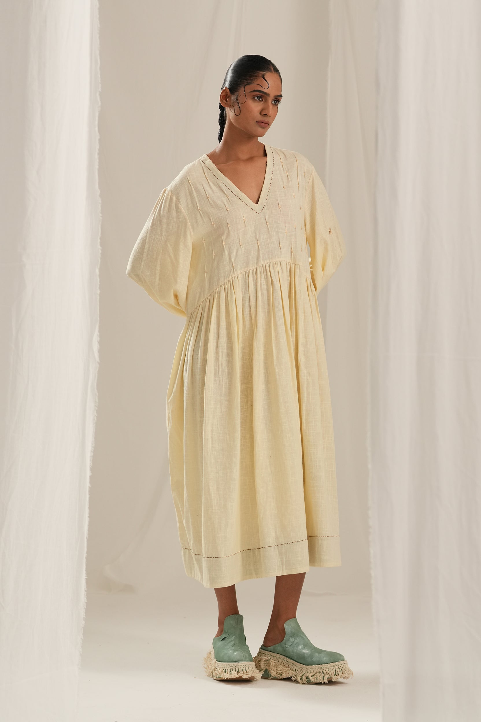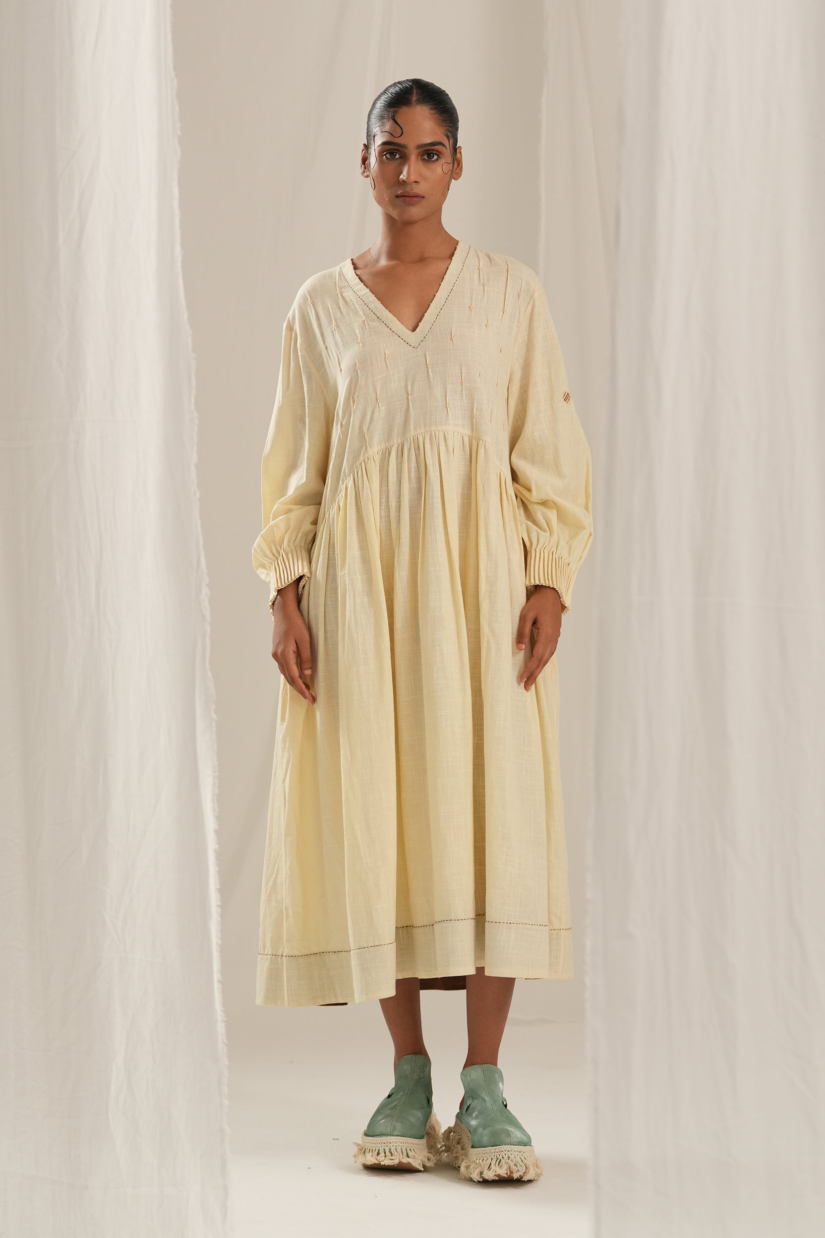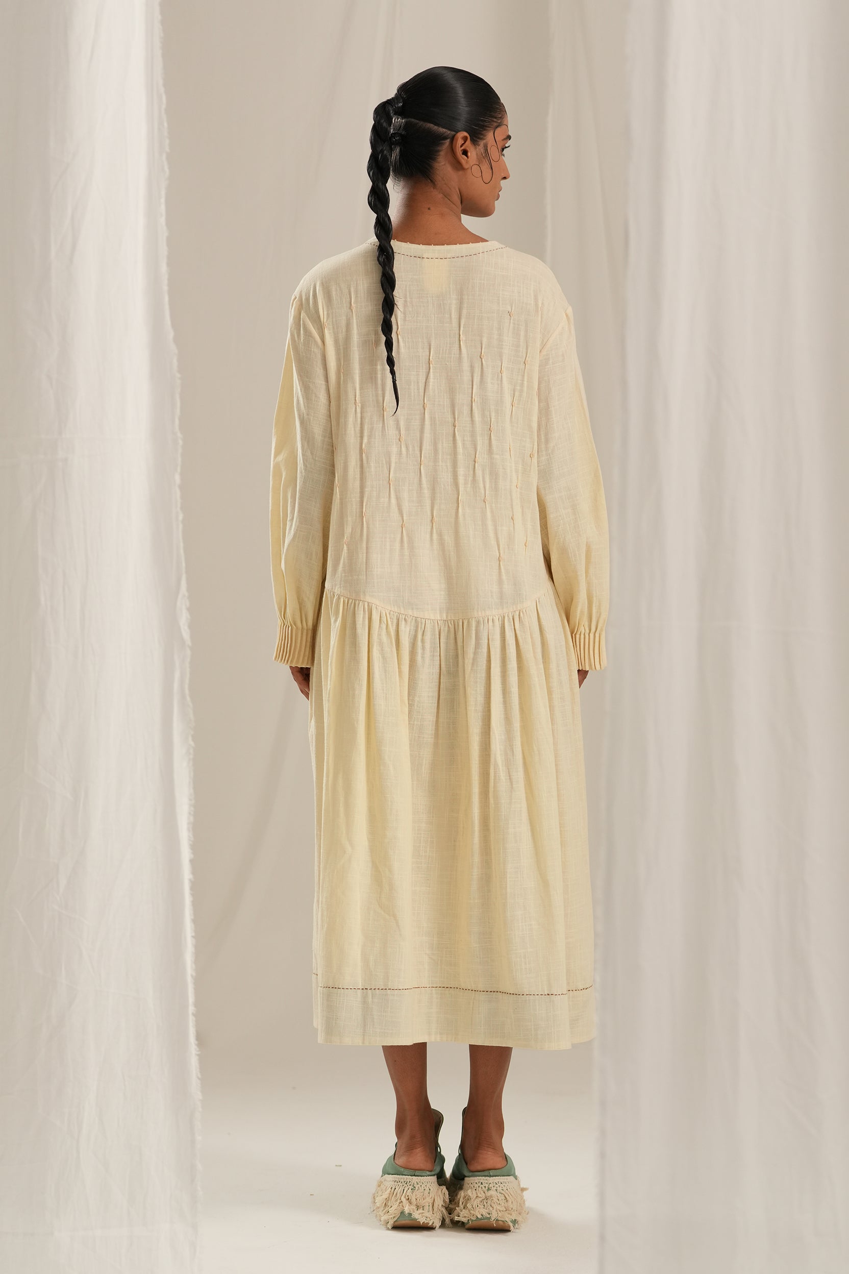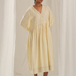 This relaxed fit, one-size dress is crafted from soft cotton fabric, ensuring a breathable and cozy feel all day long. The delicate hand embroidery adds a unique touch, making it perfect for both casual outings and special occasions.