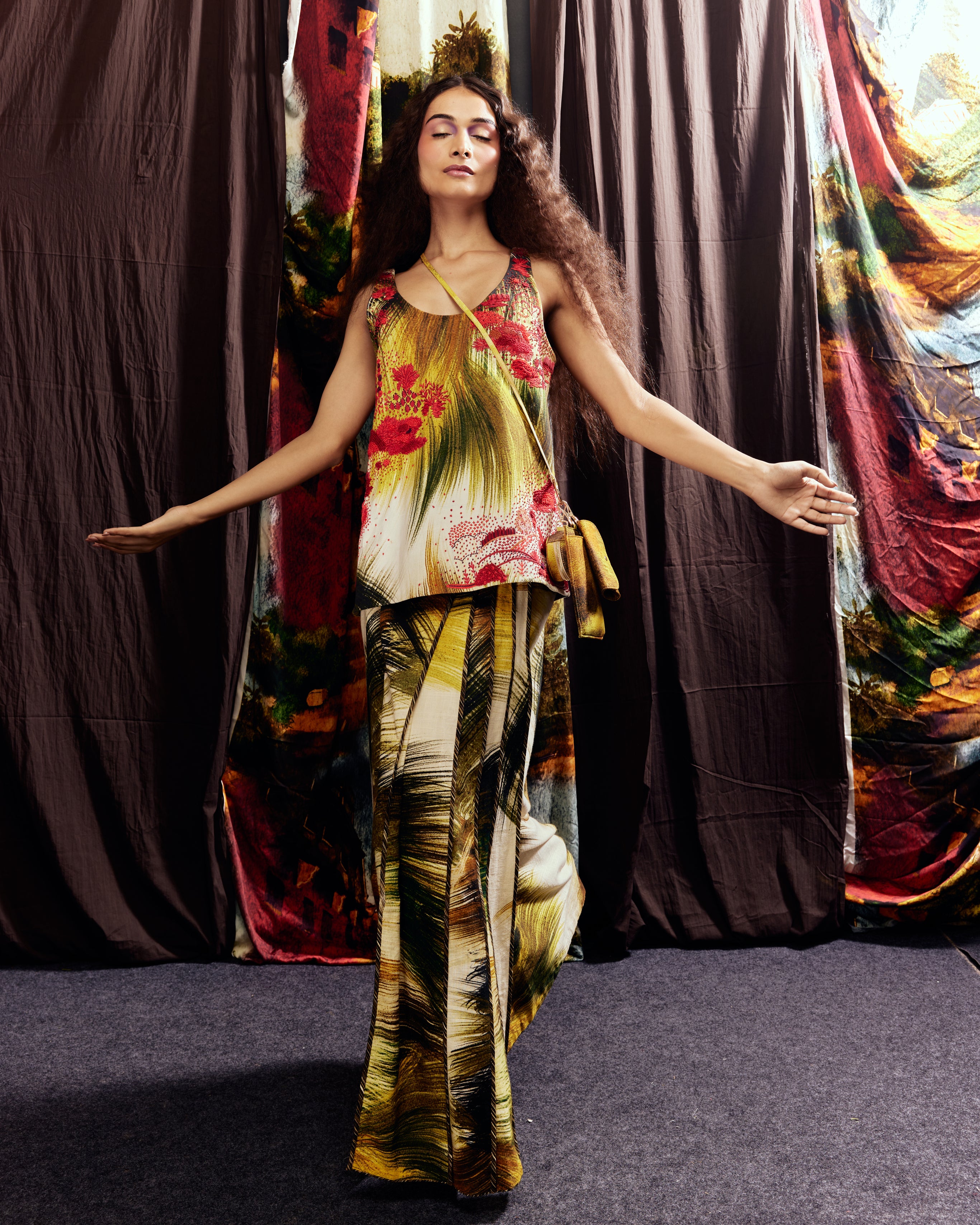 -FABRIC: HANDSPUN COTTON -COLOR: GREEN - NO OF COMPONENTS:1 -TECHNIQUE ON FABRIC:HAND PAINTED DIGITALLY PRINTED