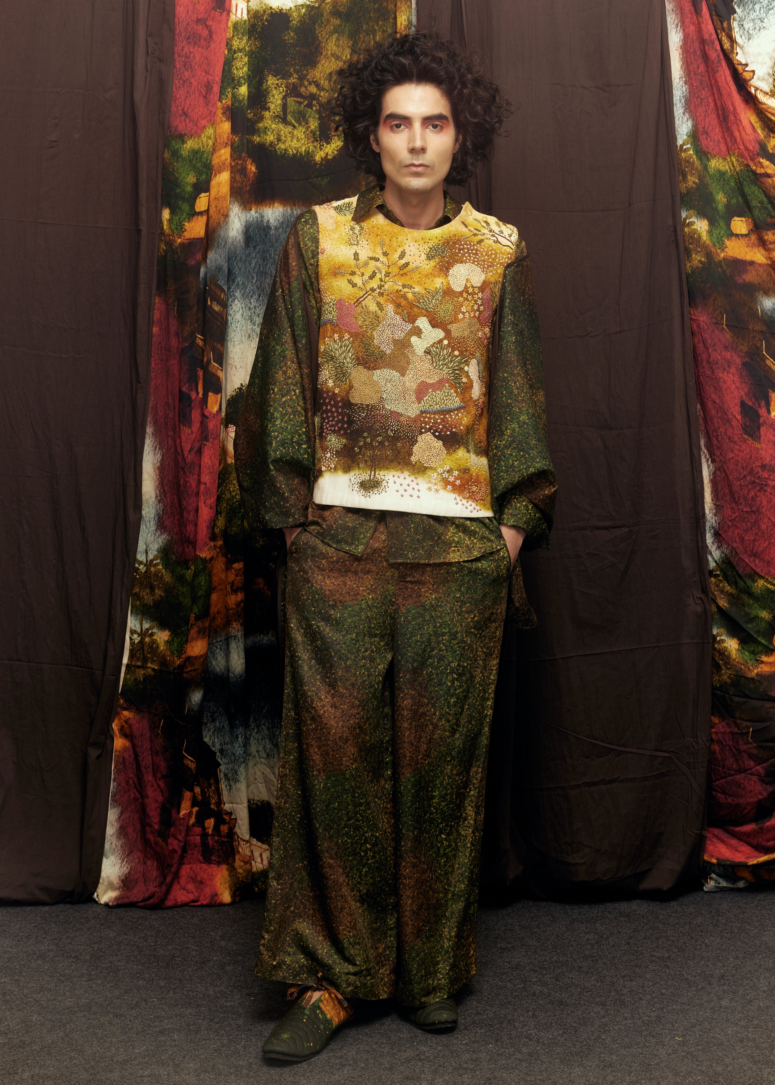 Our Green freckle shirt and trouser Co-ord, a testament to sophistication in cotton silk. The co-ord set showcases a mesmerizing hand-painted, digitally printed green freckles, transforming fashion into art. Designed with a relaxed and easy silhouette, this ensemble strikes the perfect balance between comfort and chic aesthetics.