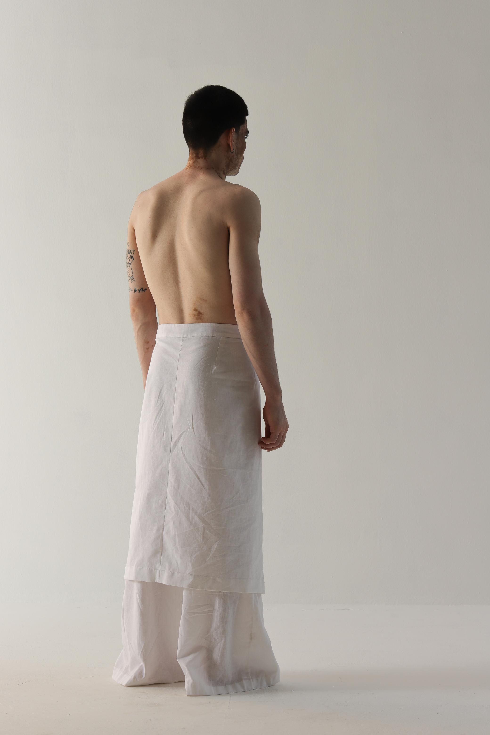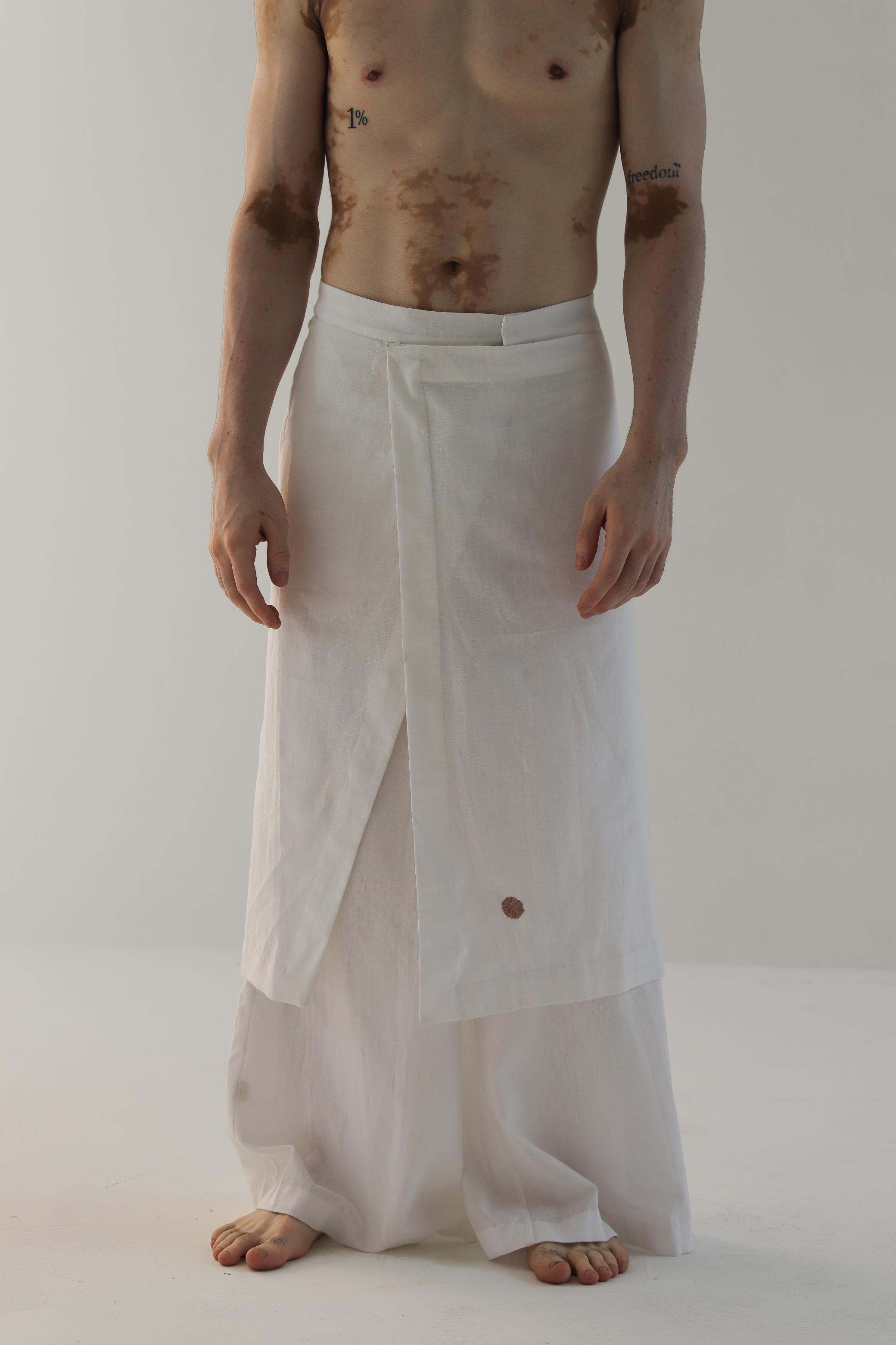 Crafted from airy cotton khadi, these wide-legged trousers boast a unique layered drape design that adds a touch of mystery to your ensemble. The subtle elegance is further accentuated by delicate til embroidery, making these pants a crisp and stylish choice for any occasion.