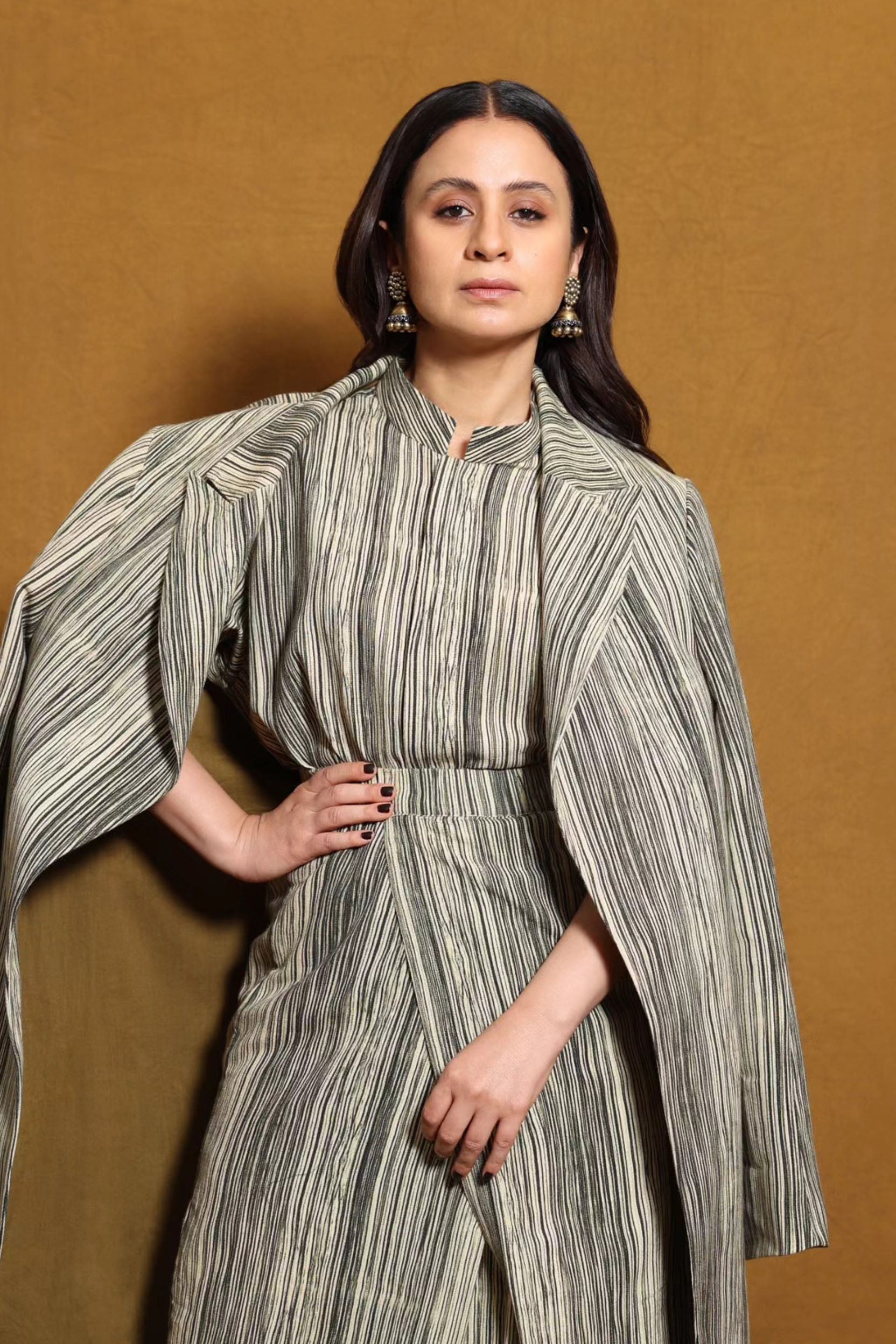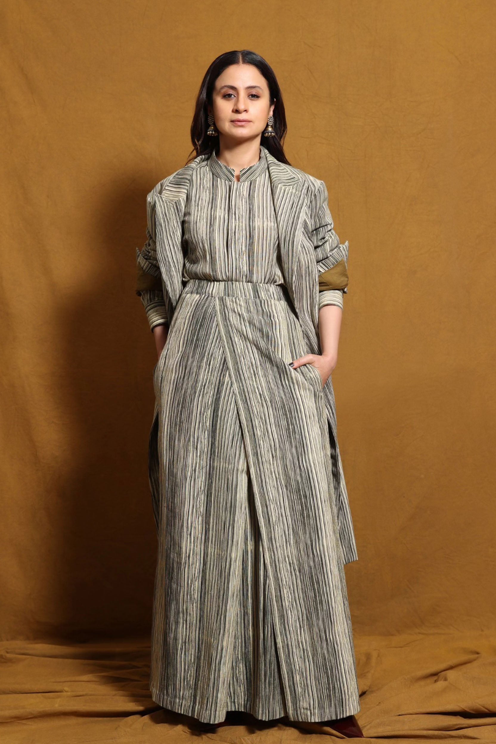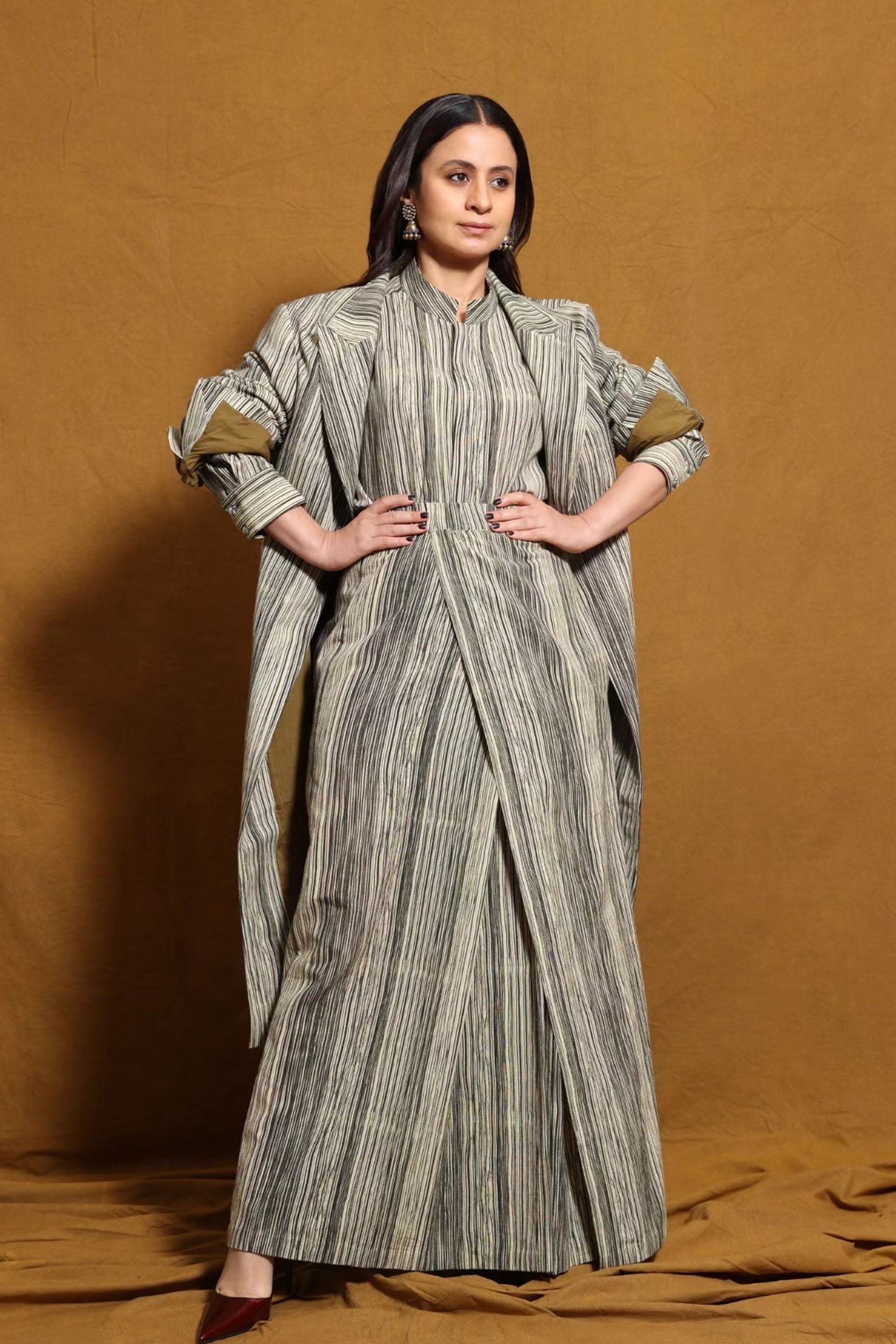 Our Kahlua stripe trench, crafted in luxurious cotton for a sophisticated touch. Featuring hand painted digitally printed stripes and tailored finishing, this piece effortlessly blends timeless elegance with modern flair. Perfect for layering, it adds a polished charm to any ensemble.