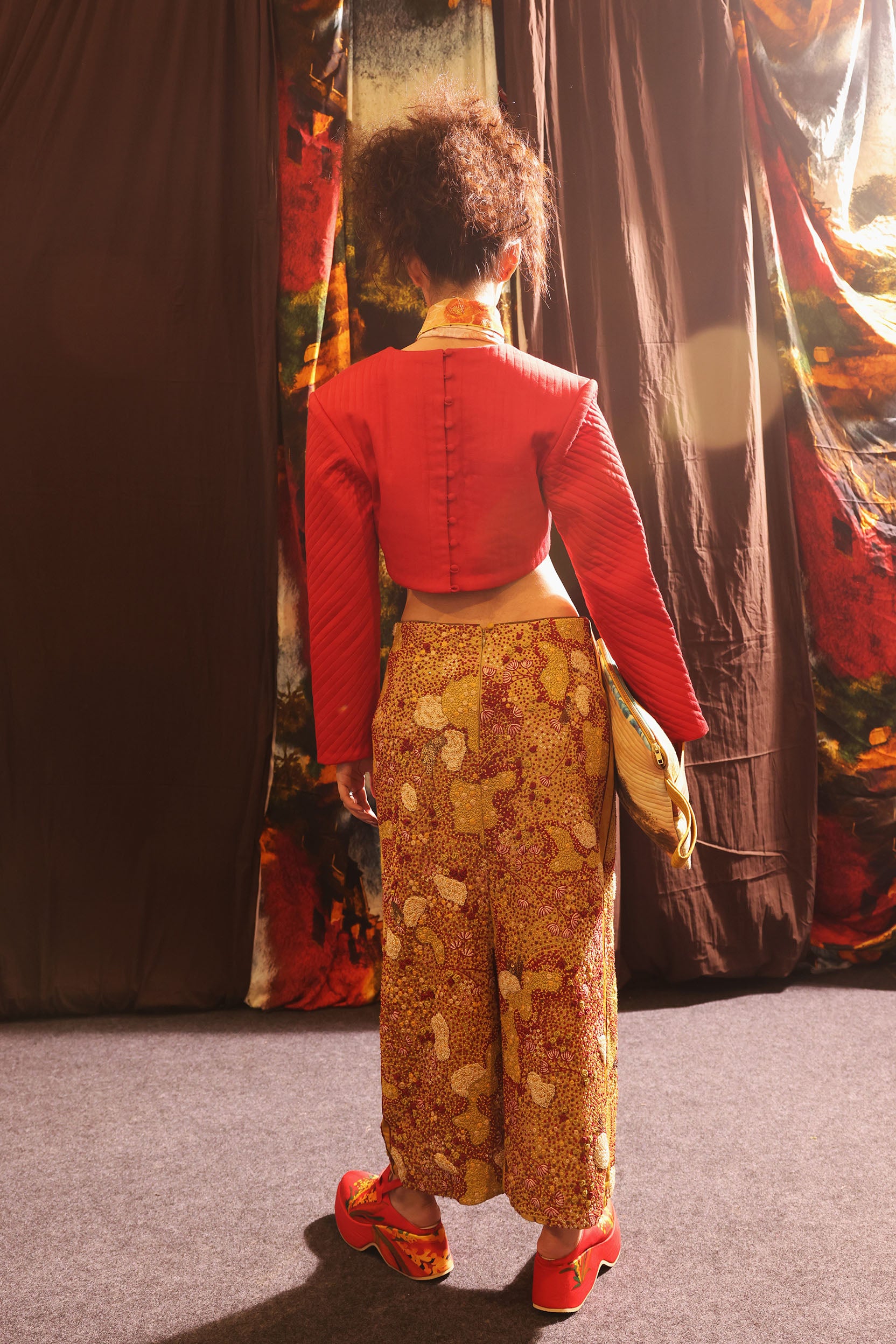 This Moorland Skirt made in soft cotton modal. It features beautiful texture all over created through threadwork hand embroidery with fine tailoring making it a statement peice.