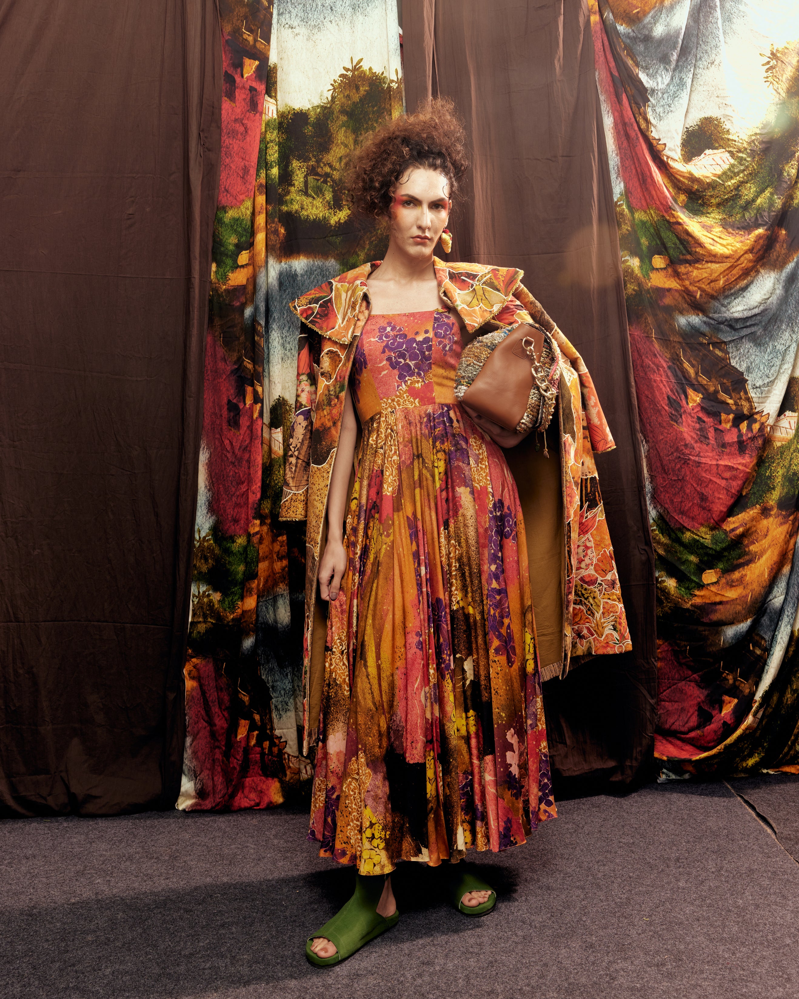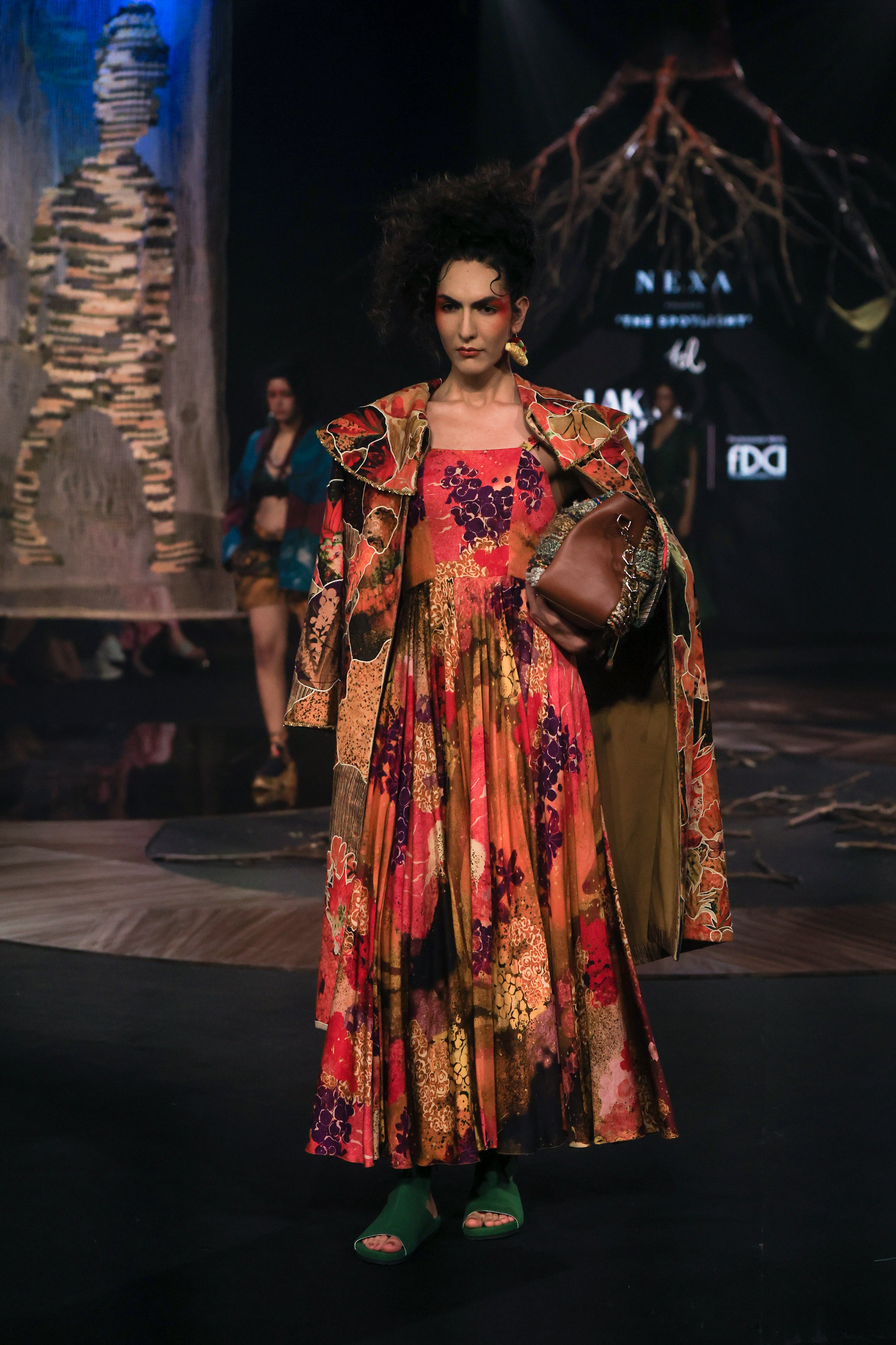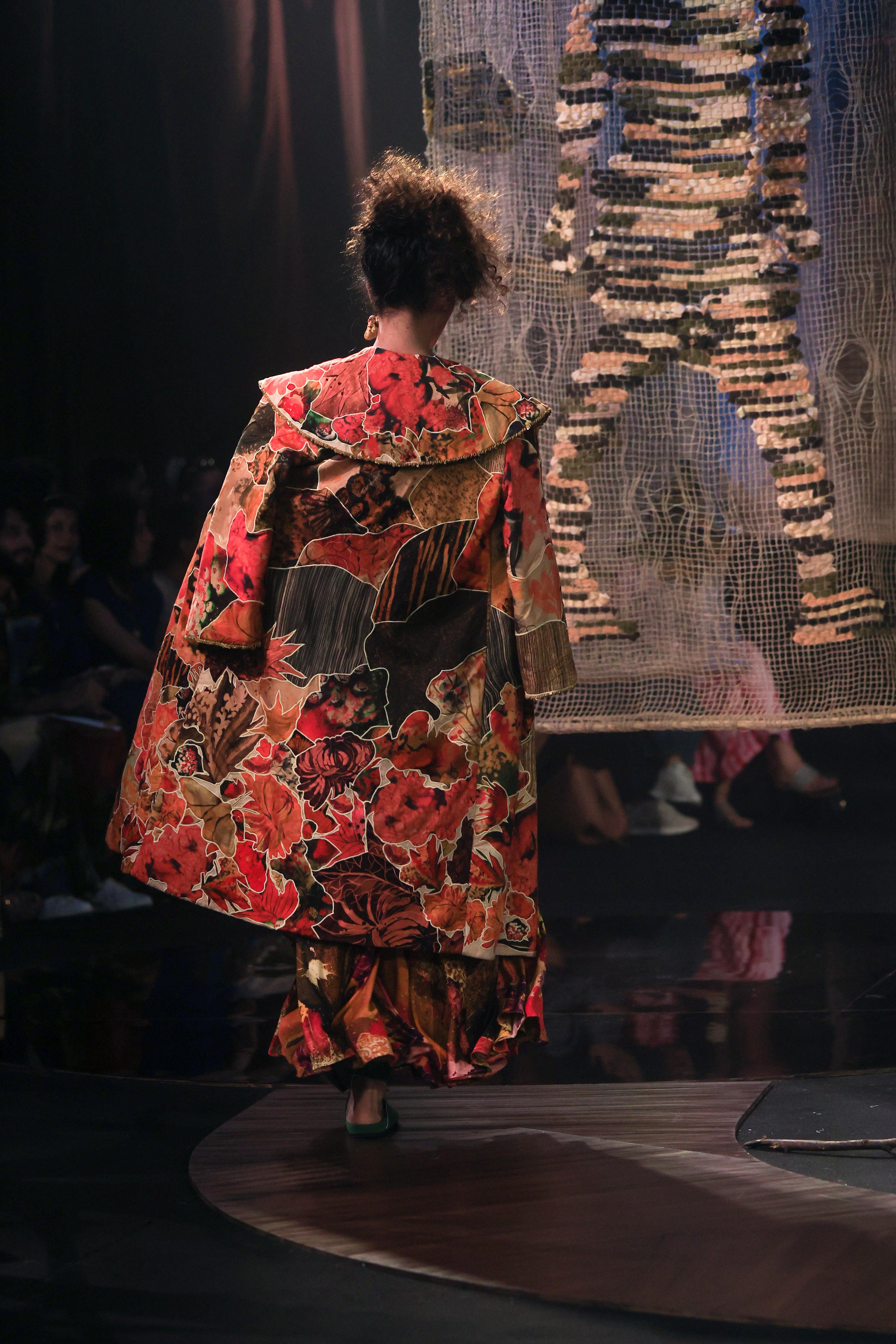 Our mosaic overlay is crafted from fabric scraps patched together to create a nice pattern with a statment collar. it is finished with precision.