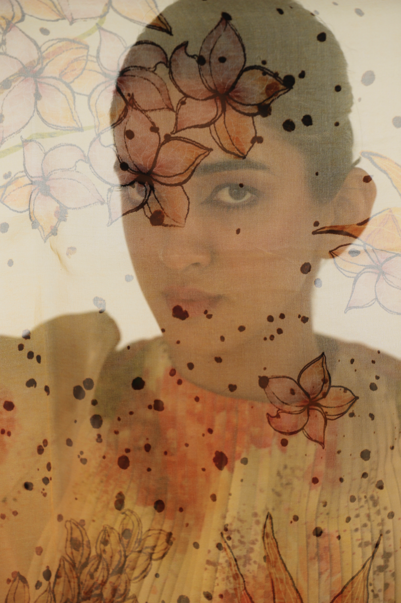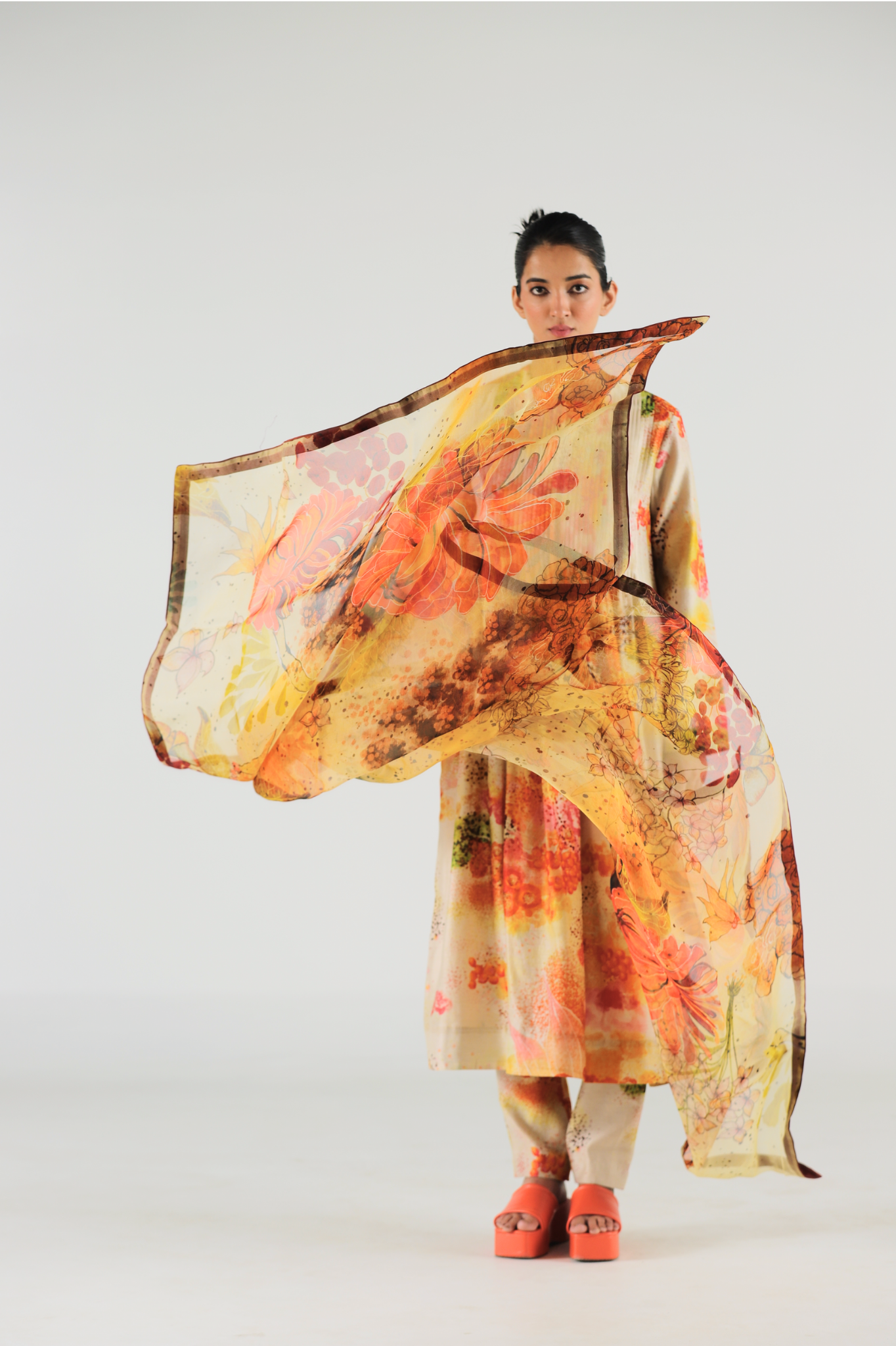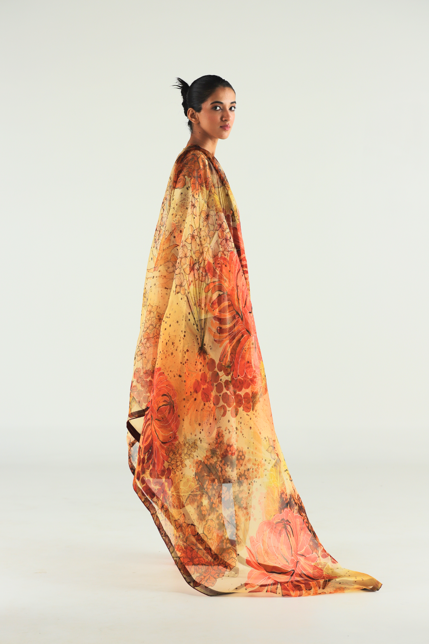 The Moth Floral Dupatta hand-painted, digitally printed florals in silk organza with a clean edge detail.