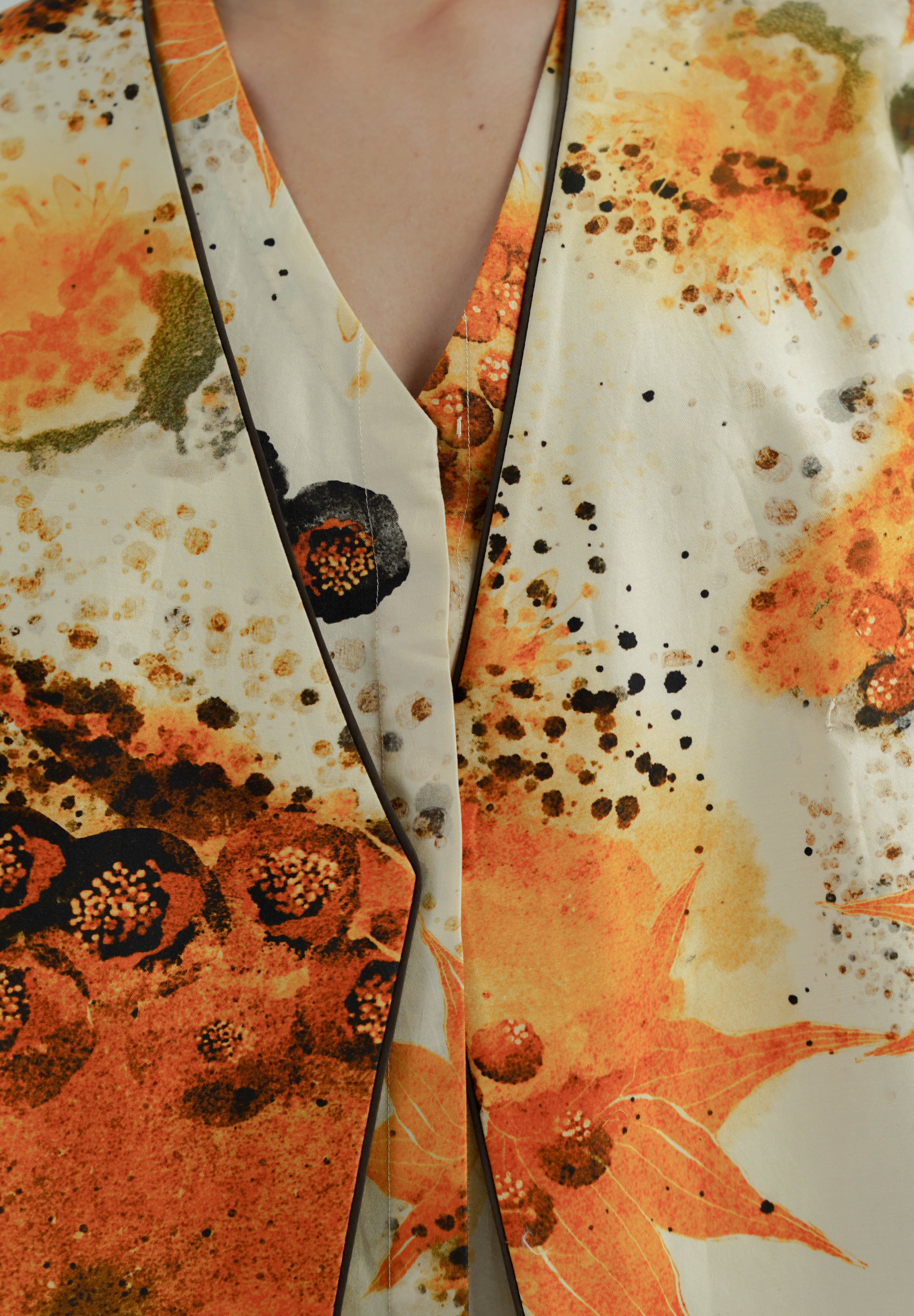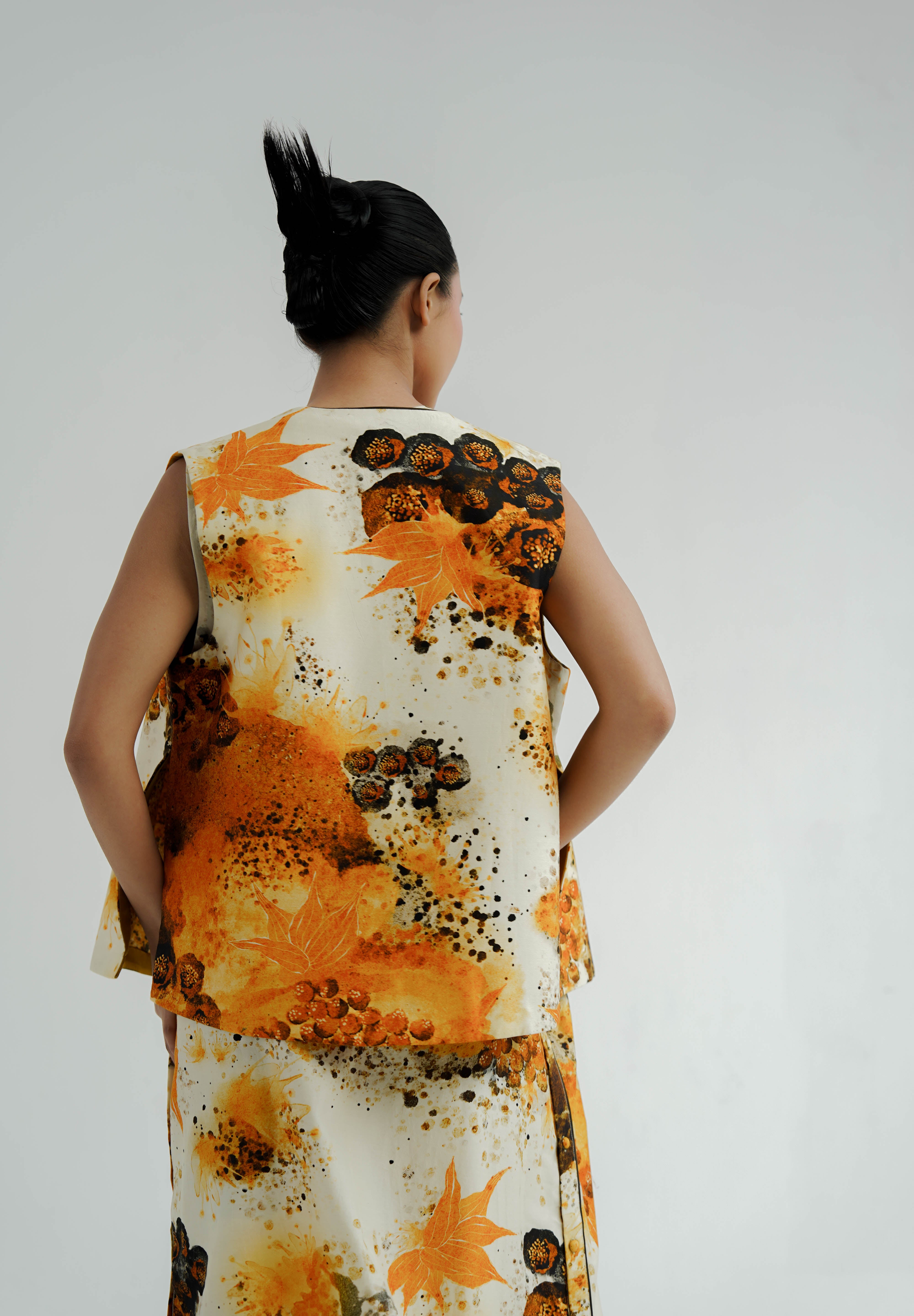 Discover effortless elegance with our mustard Florid Gilet, crafted from premium Chanderi. Featuring a relaxed fit and impeccable stitching, this gilet combines comfort with flawless finishing for a sophisticated look.