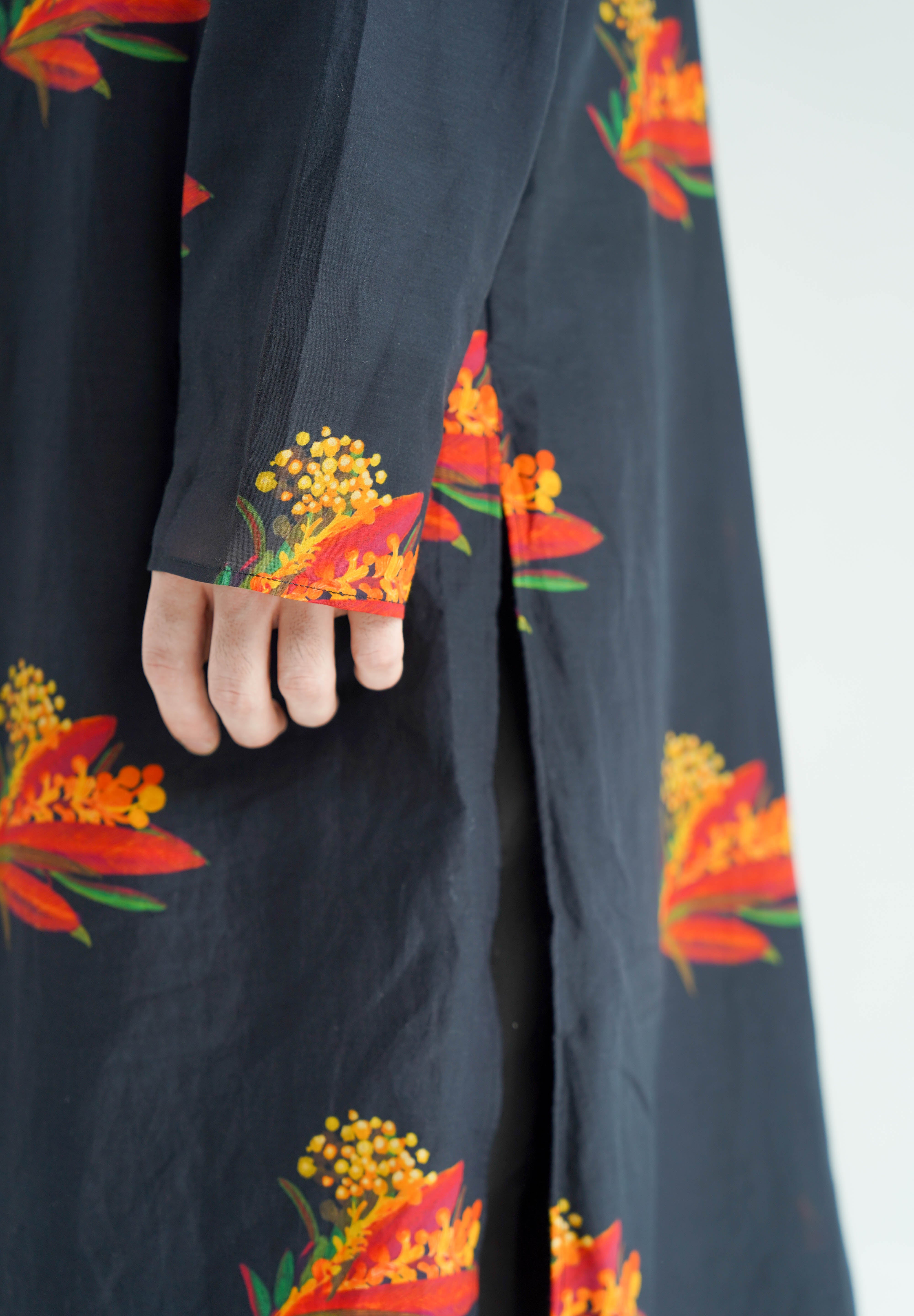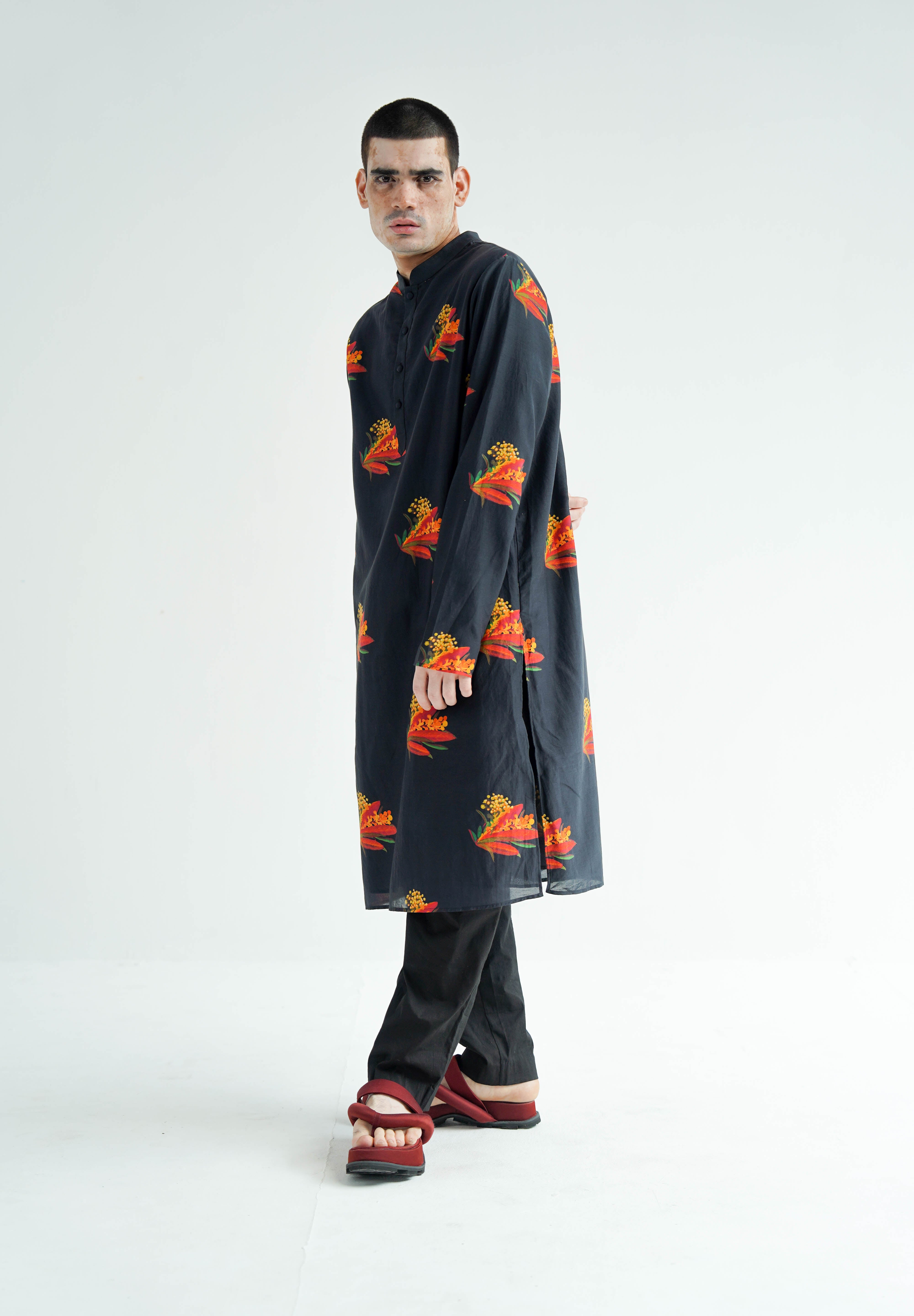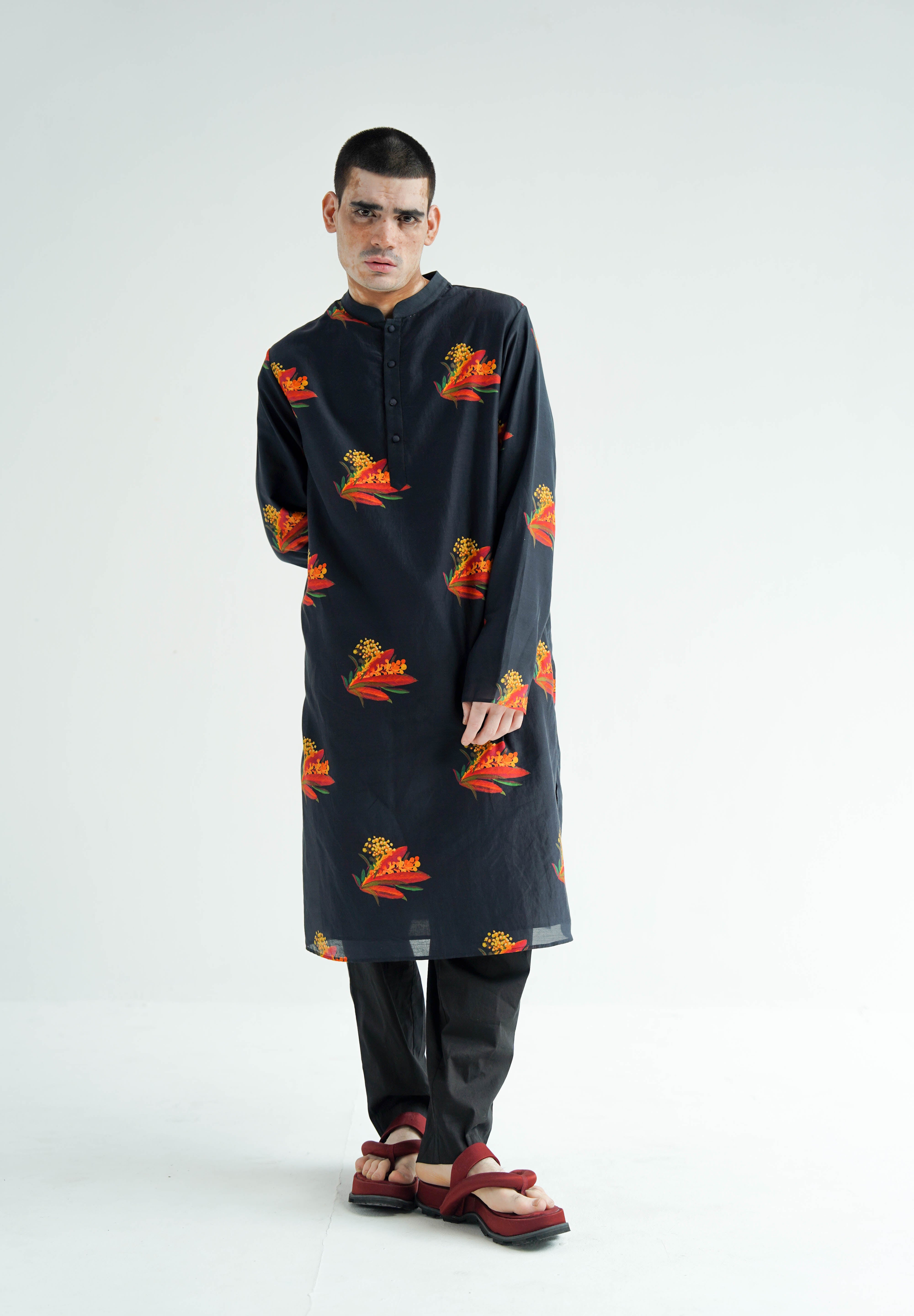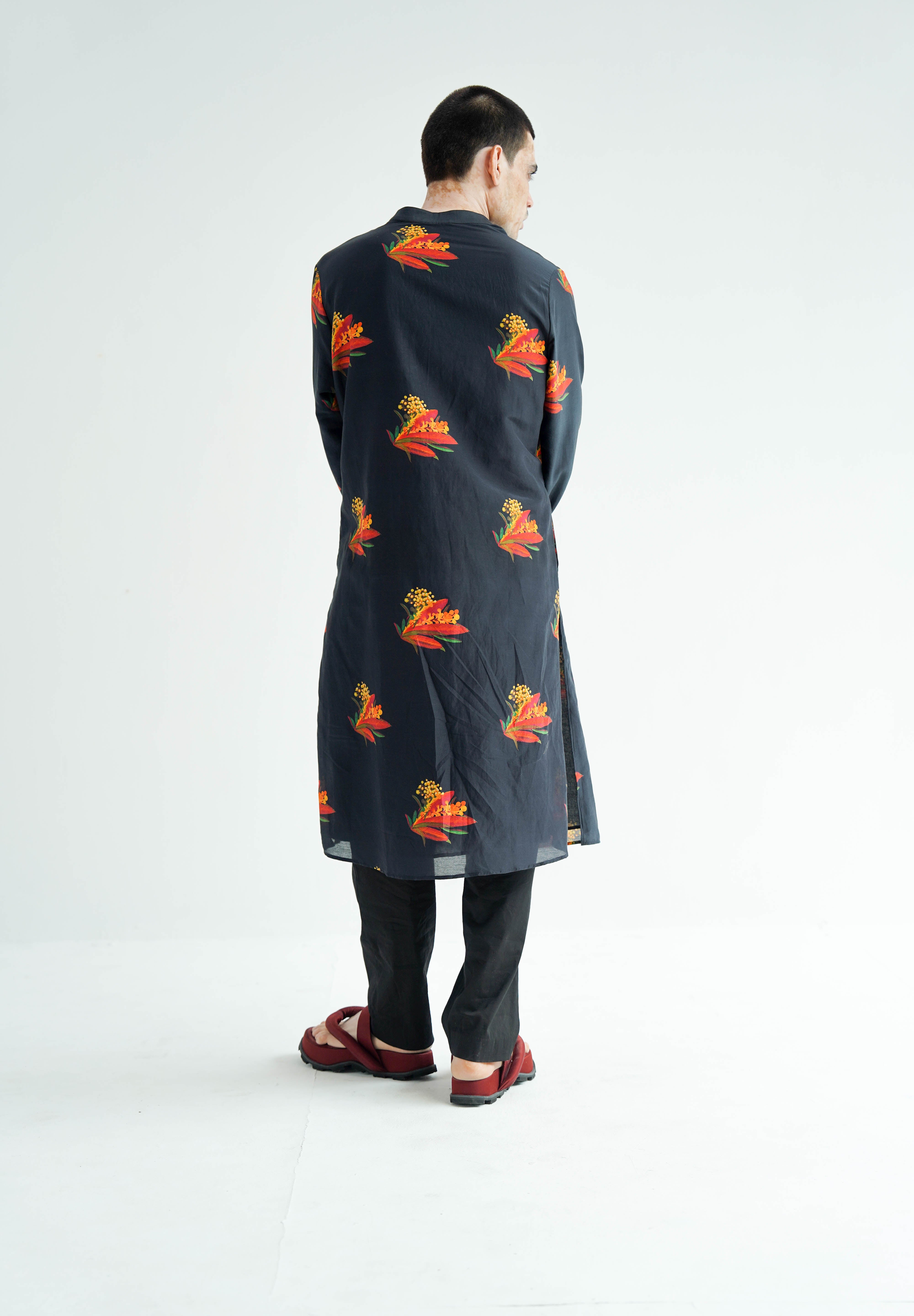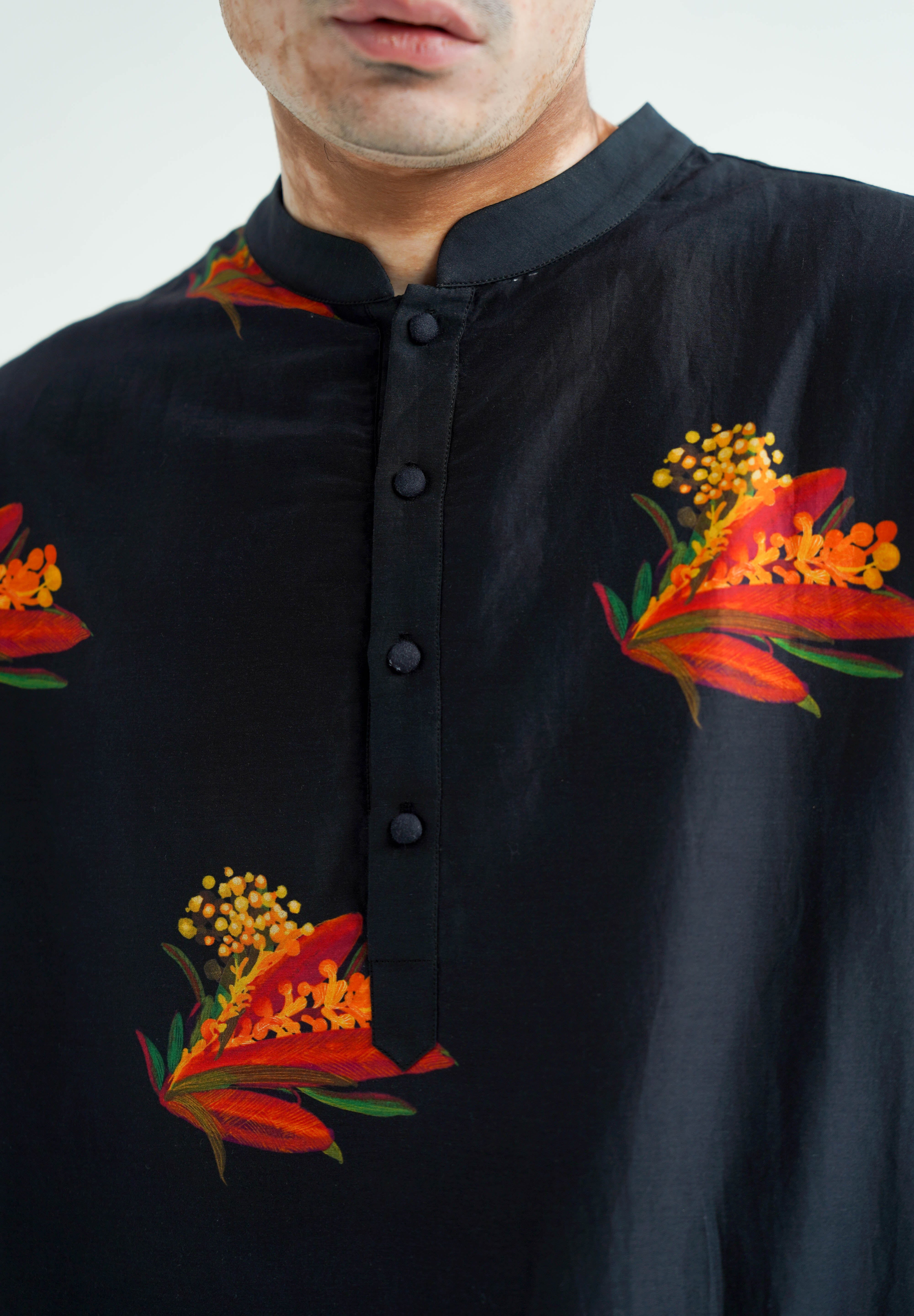 This ensemble is meticulously crafted from luxurious silk and paired with digitally printed, relaxed-fit cotton pants, perfectly marrying luxury with comfort. Designed for a relaxed fit that exudes ease, the Nero Kurta Set is finely tailored and exquisitely finished
