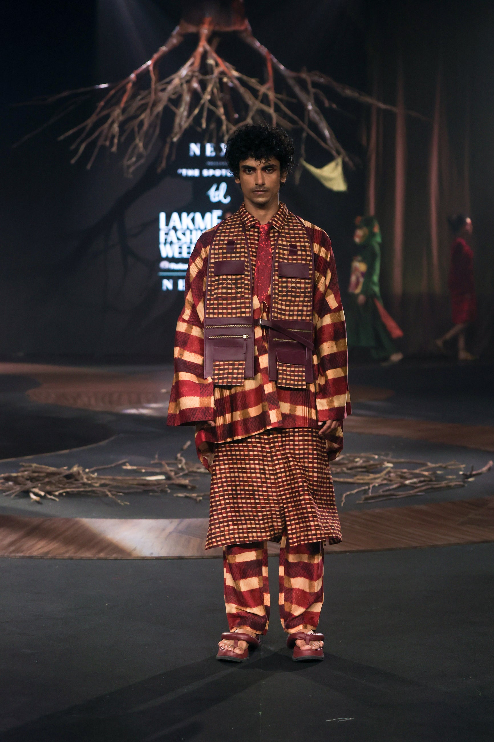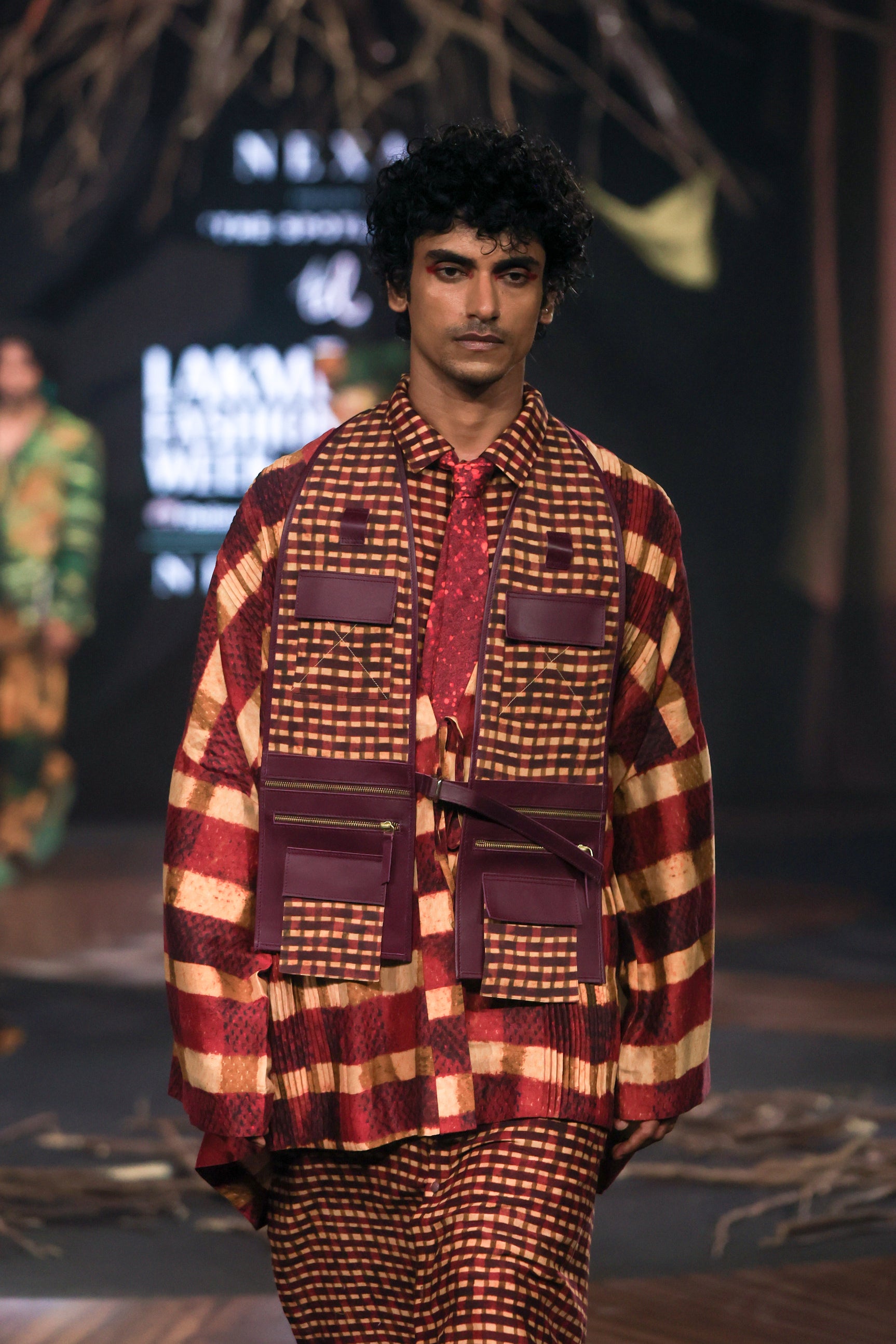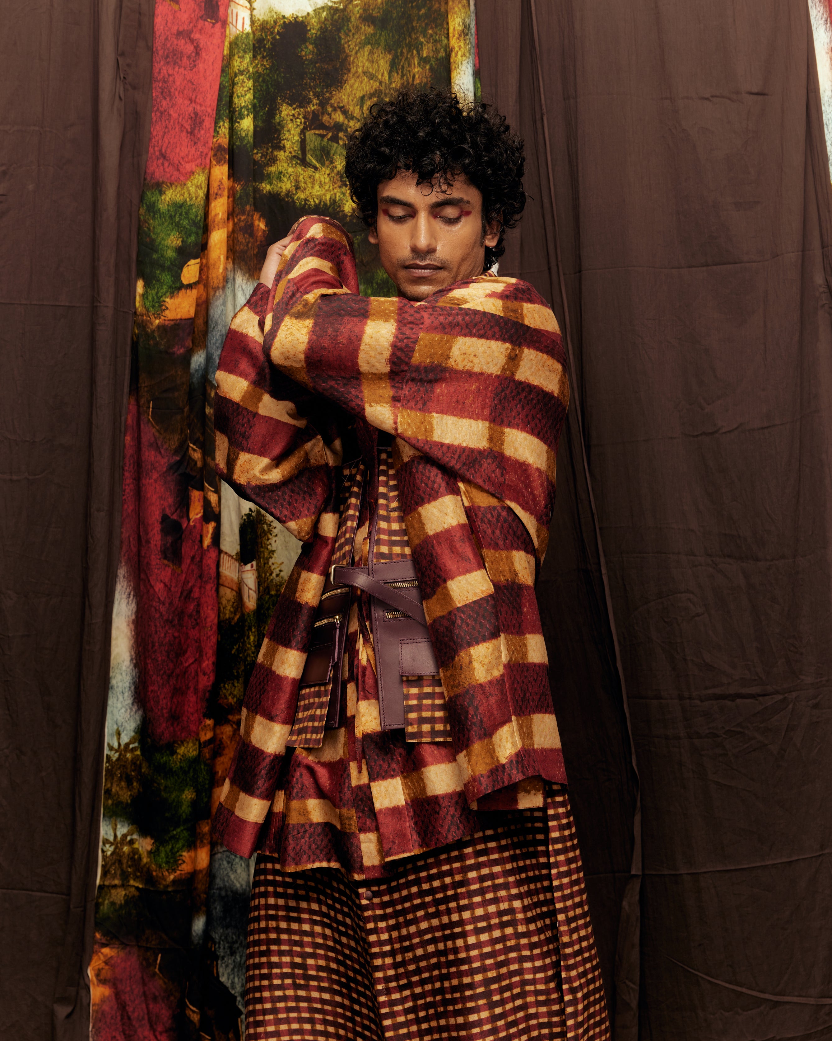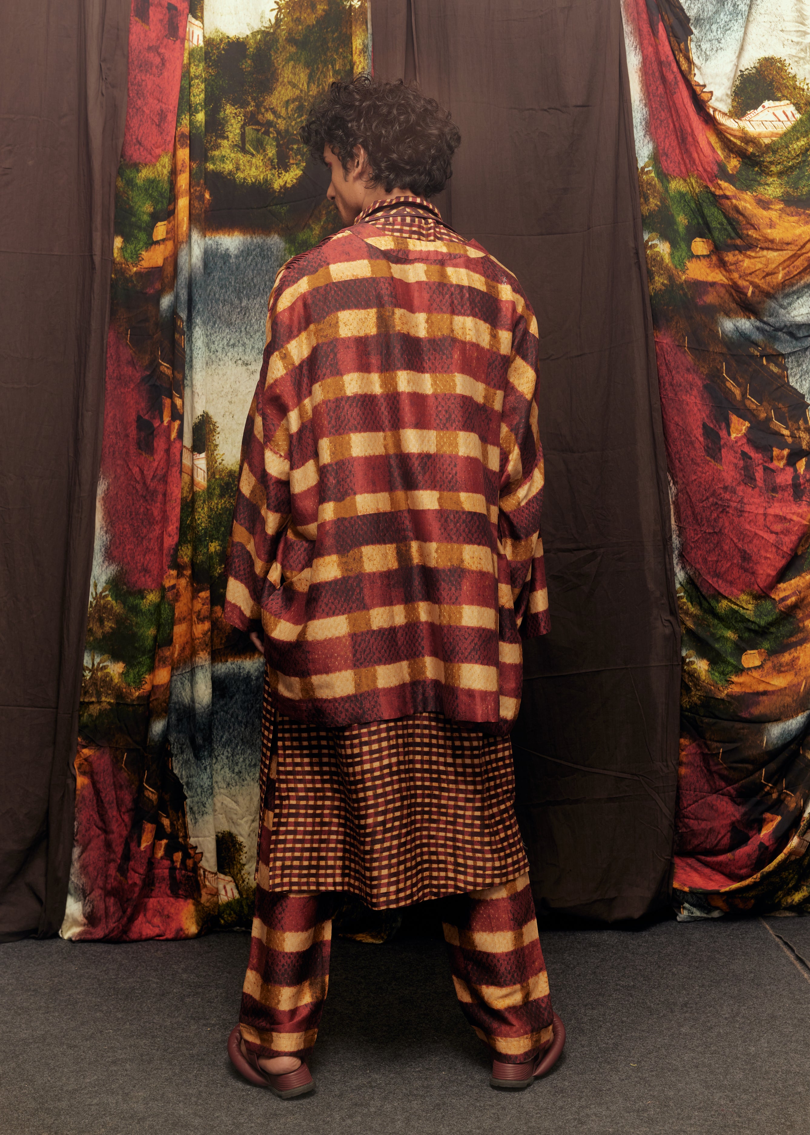 This plaid overlay is meticulously crafted in chanderi, marrying luxury with comfort. Designed for a relaxed fit that exudes ease and comfort. This handpainted digitally printed checks overlay is finely tailored and finished.