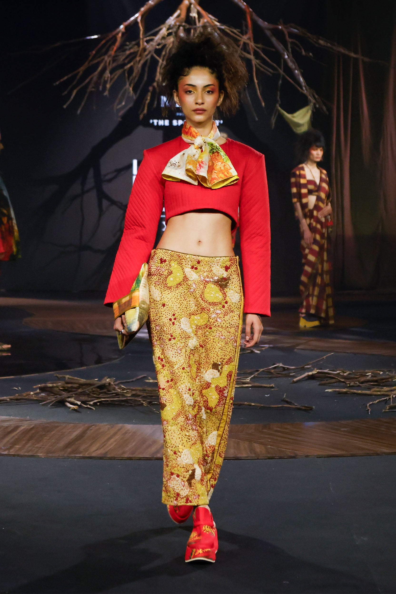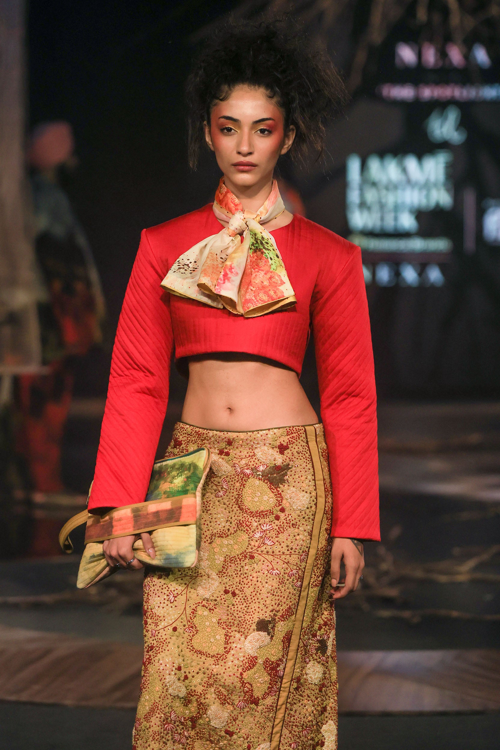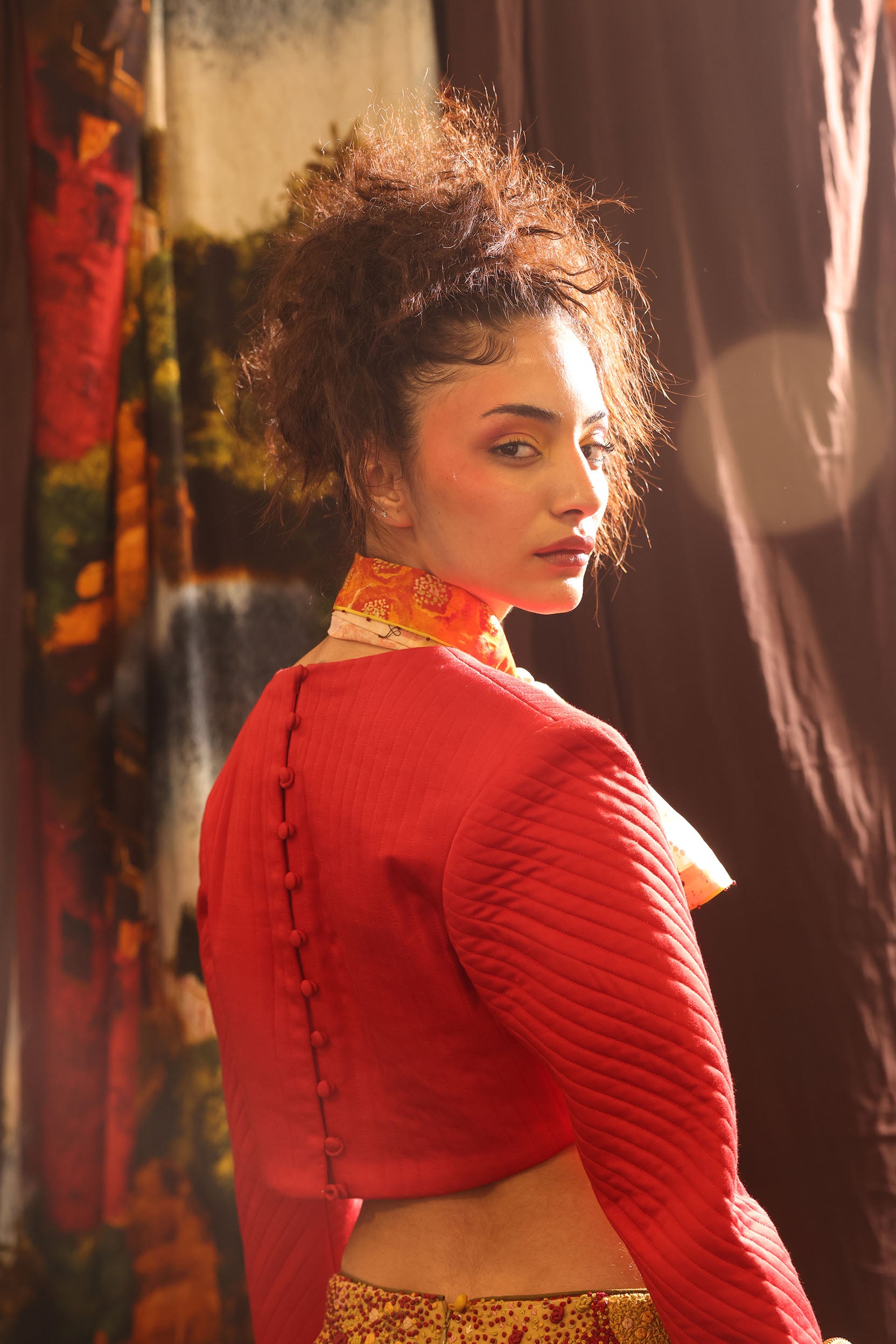 This red crop top made in soft cotton modal. It features power shoulder with nicely finished shoulder padding and quilting all over making it a statement peice.