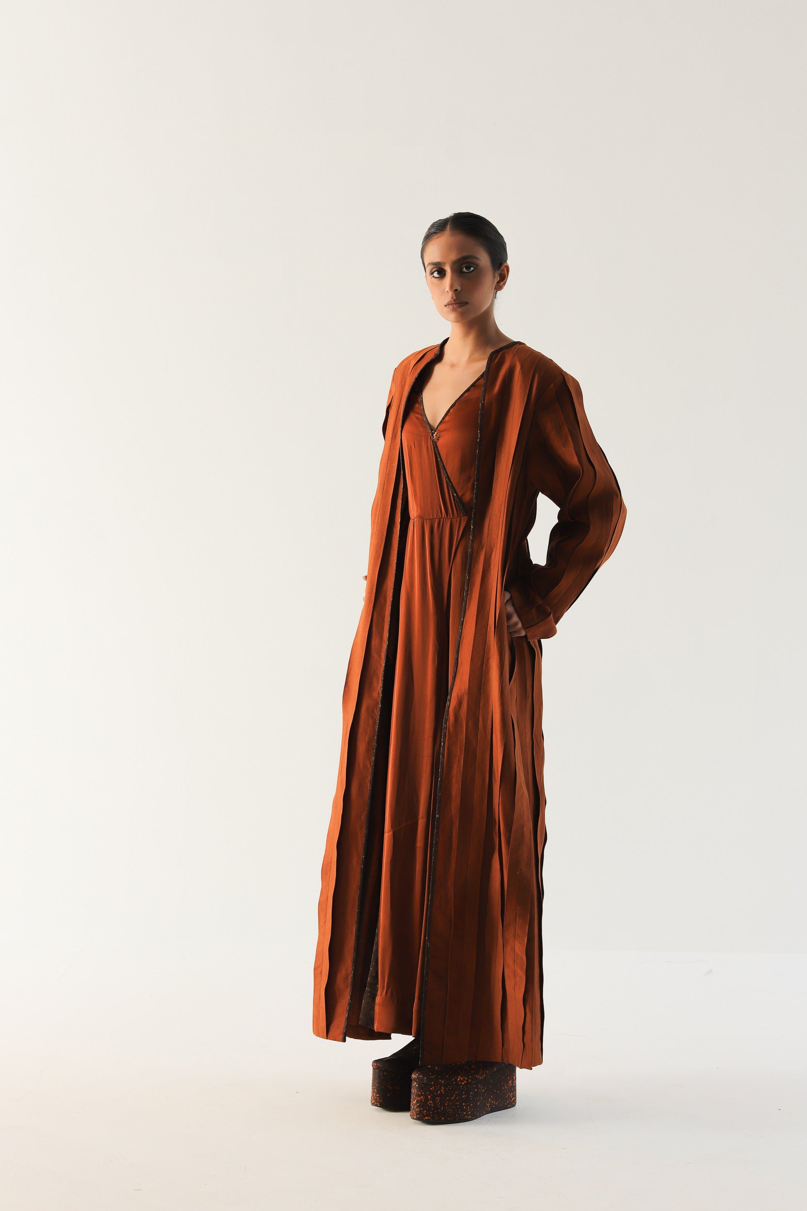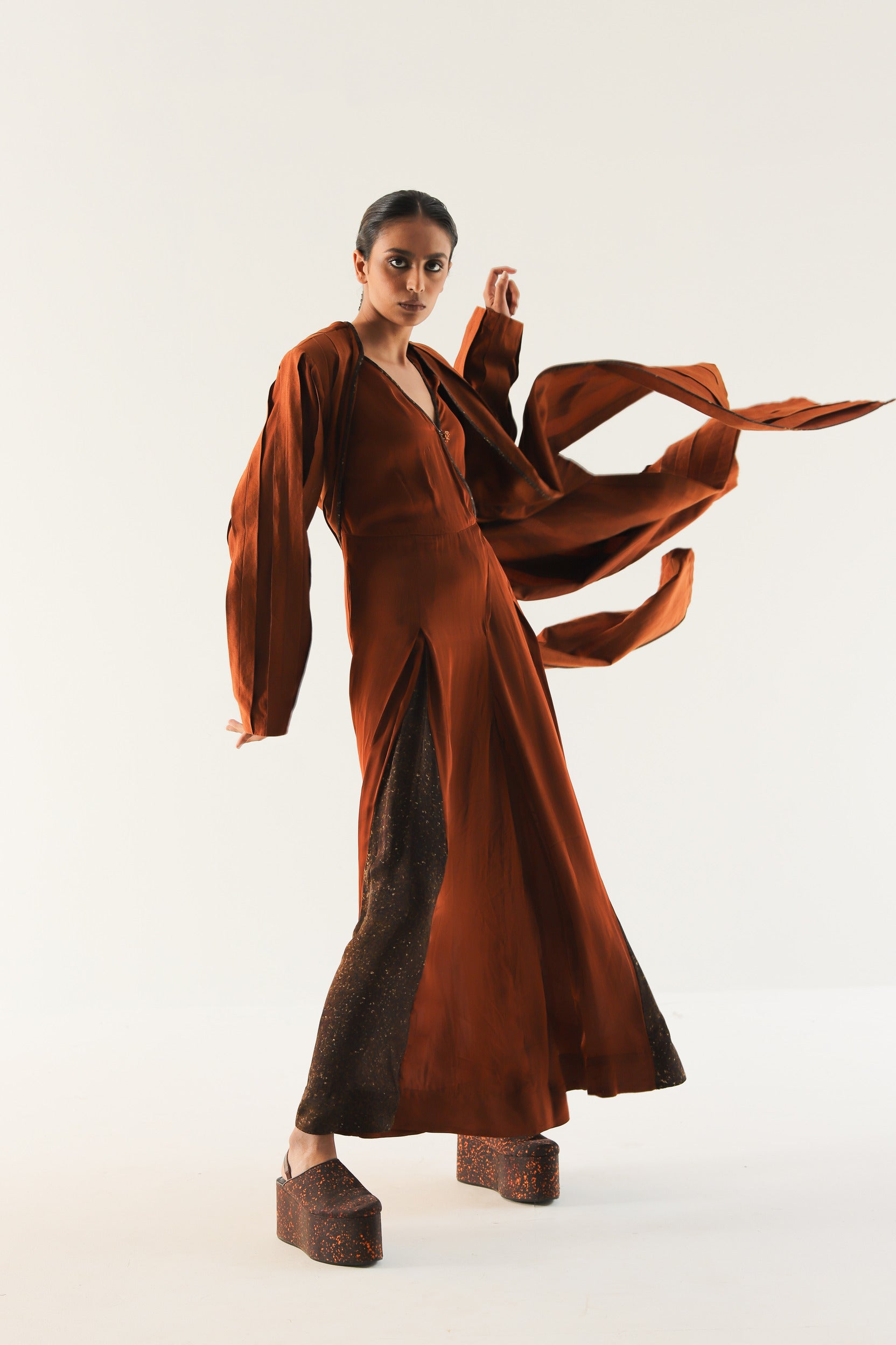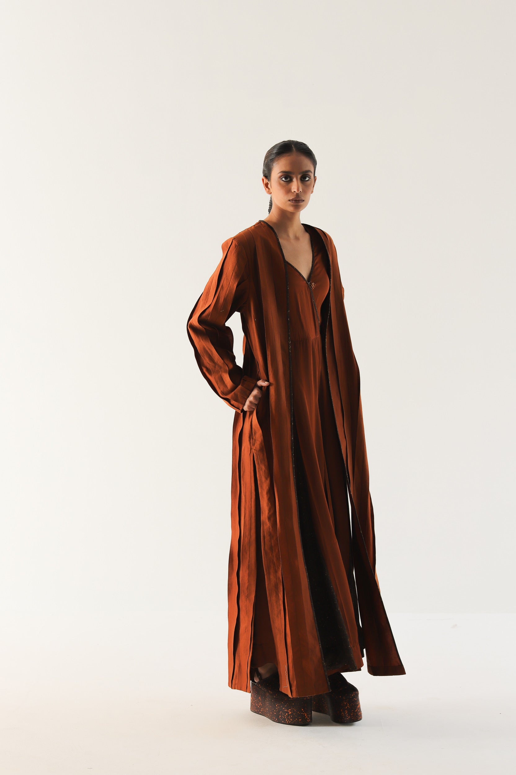 What truly sets this piece apart is its meticulous surface technique, which creates a captivating texture, making it a statement, classy, and elegant addition to your wardrobe. The Russet Overlay is not only a fashion statement but also a structured masterpiece, ensuring you radiate confidence and grace wherever you go.
